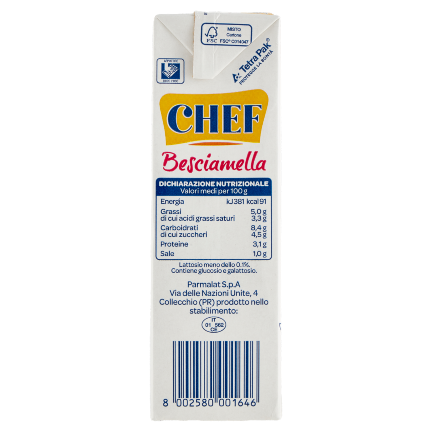 Chef Besciamella Senza Lattosio 500 ml