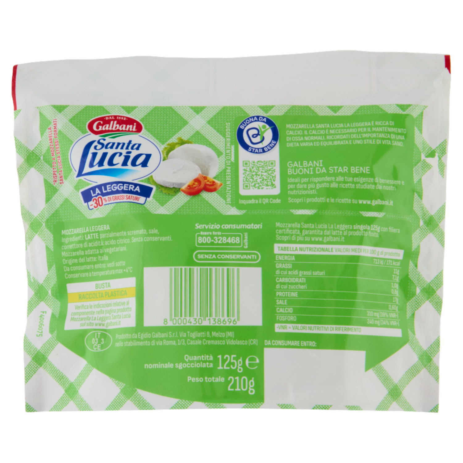 Galbani Santa Lucia la Leggera Mozzarella 125 g