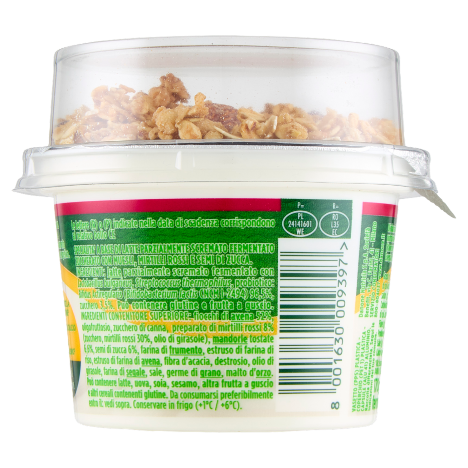 ACTIVIA Fibre Mix&Go con Probiotico Bifidus, Yogurt Bianco con Muesli,Semi Zucca,Mirtilli Rossi,170g