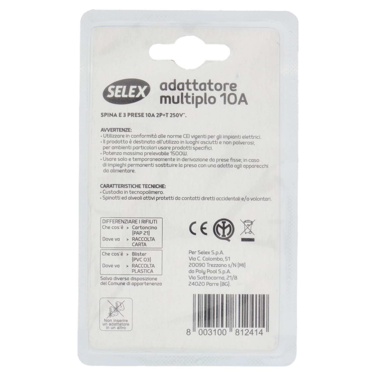 Selex Adattatore Multiplo Spina 10A + 3 Prese 10A(Ita) Bianco
