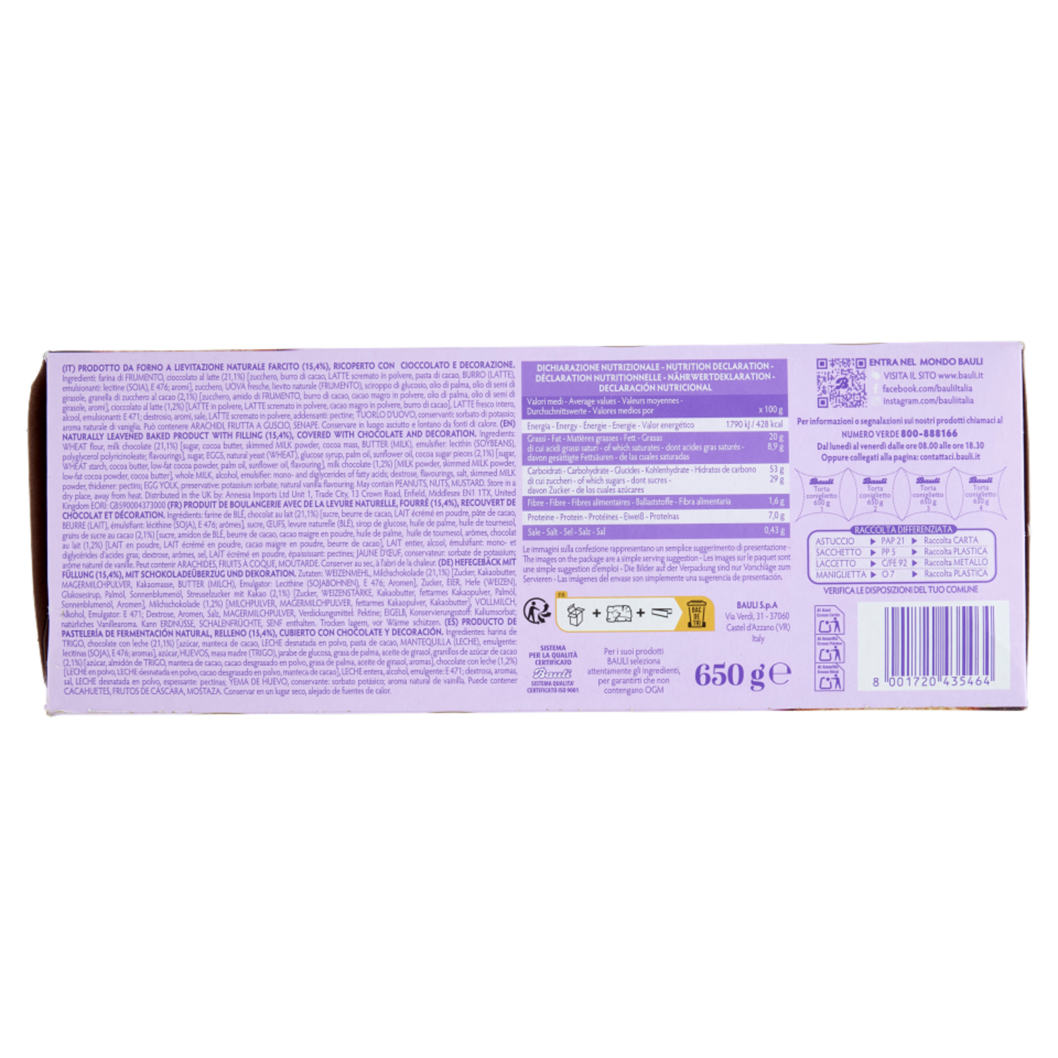 Bauli Coniglietto con Cioccolato e Vaniglia 650 g