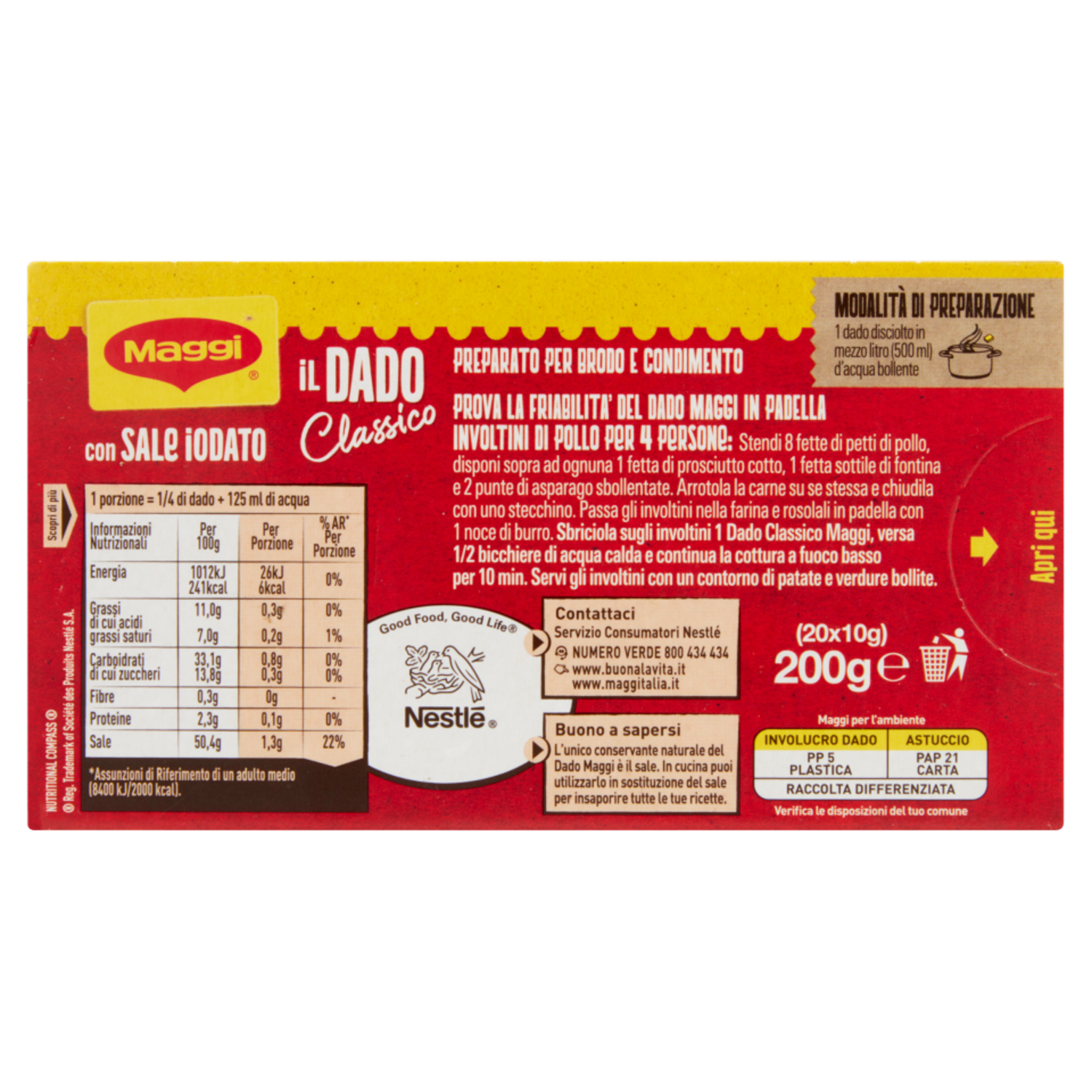 MAGGI Dado Classico preparato per brodo (20 dadi) 200 g