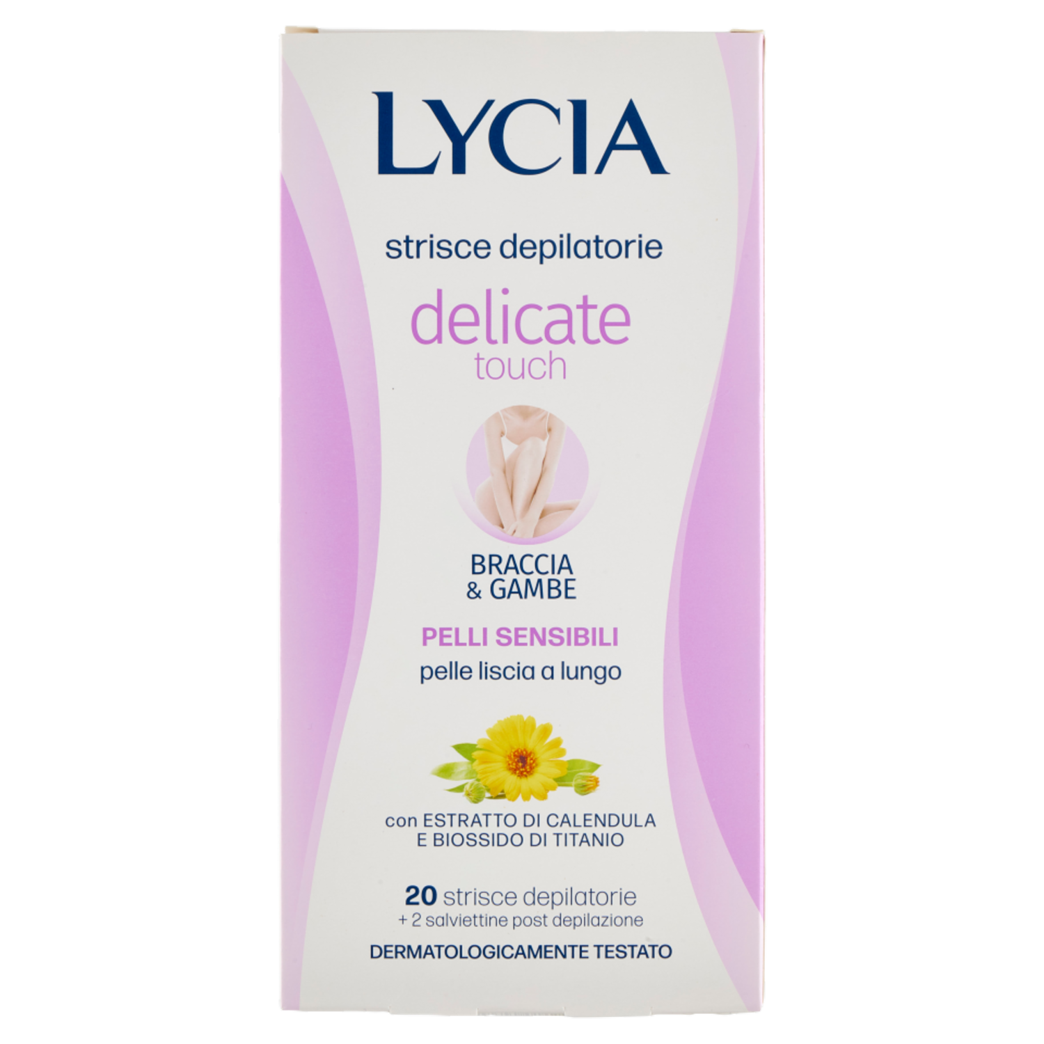 Lycia delicate touch strisce depilatorie Braccia & Gambe Pelli Sensibili 20 strisce + 2 salviettine