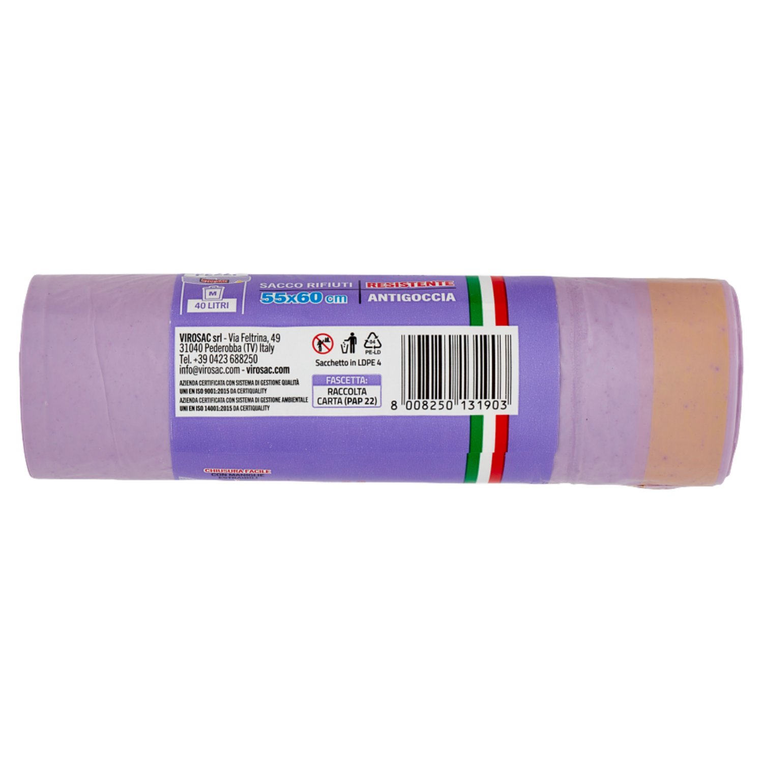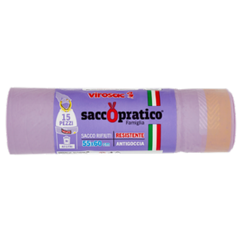 virosac saccopratico Famiglia Sacco Rifiuti Resistente Antigoccia 55x60 cm 40 Litri M 15 pz