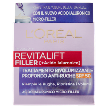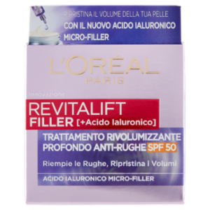 L'Oréal Paris Crema Viso Revitalift Filler Antirughe Rivolumizzante con Acido Ialuronico, SPF 50