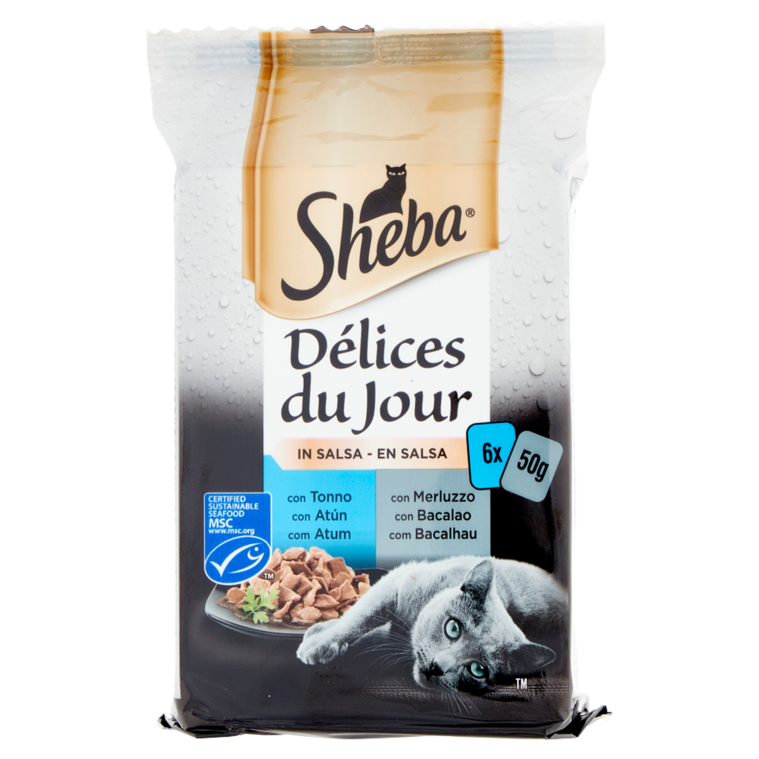 Sheba Délices du Jour in Salsa con Tonno, con Merluzzo 6 x 50 g