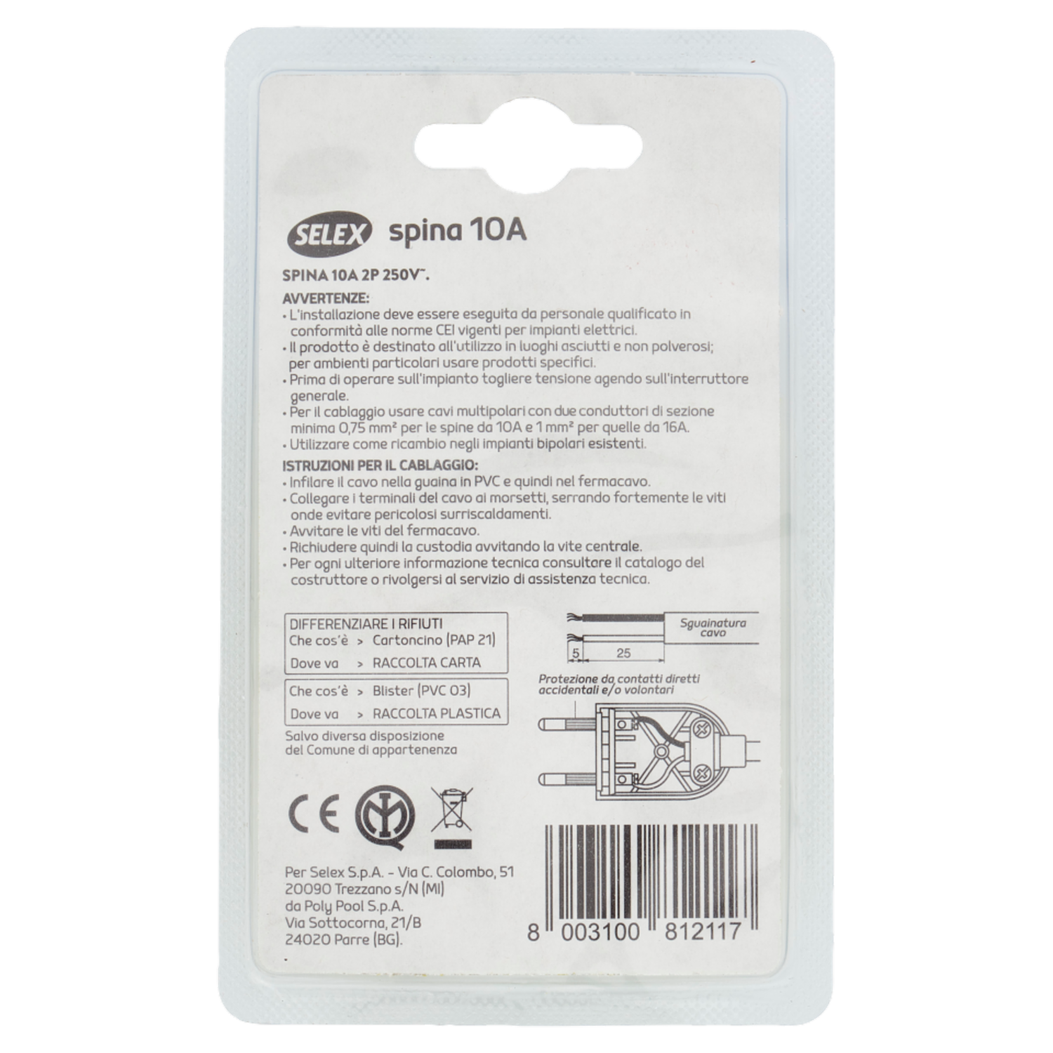 Selex Spina "Blueline" 10A(Ita) Senza Terra Bianco