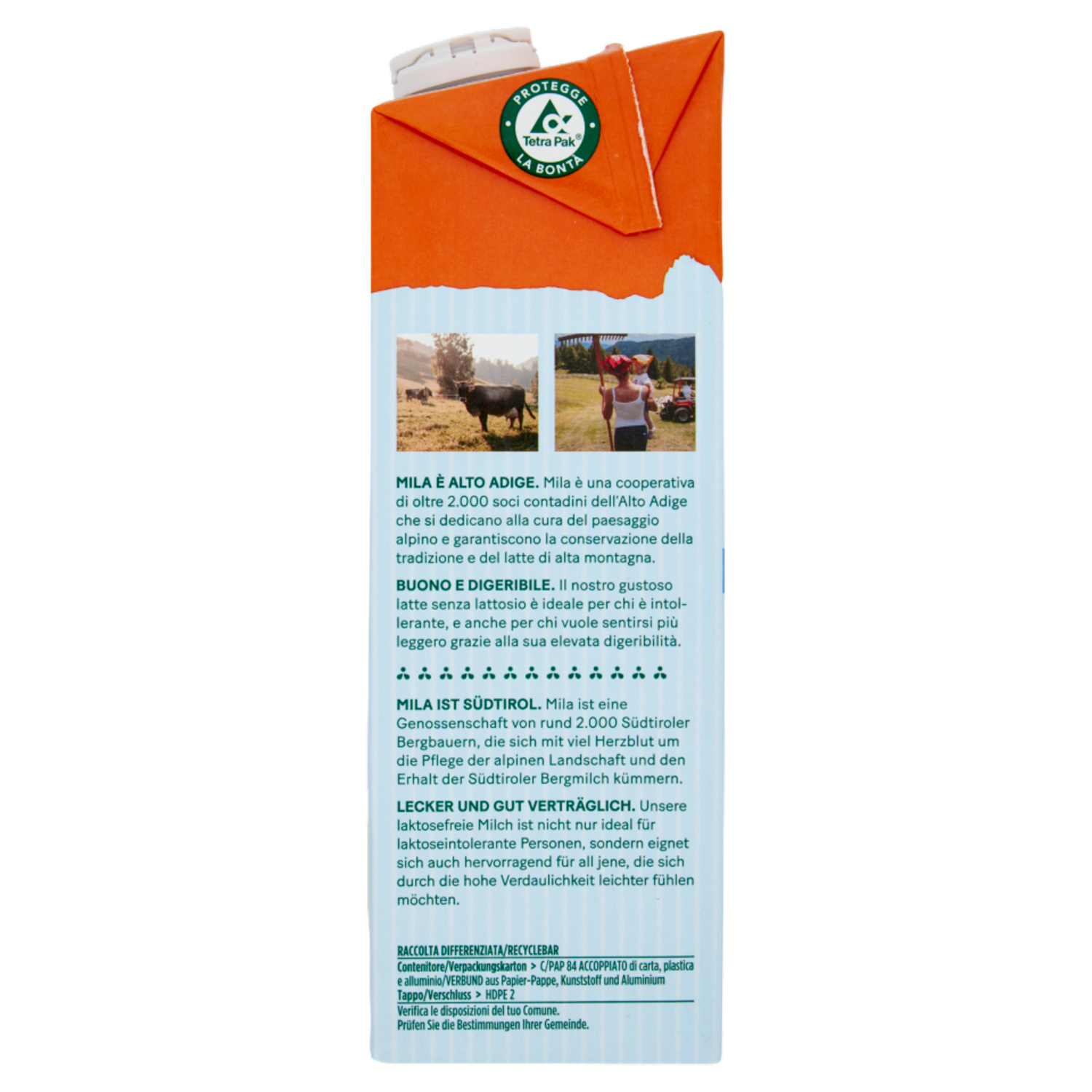 mila Senza Lattosio* Latte di montagna UHT parzialmente scremato 1000 ml