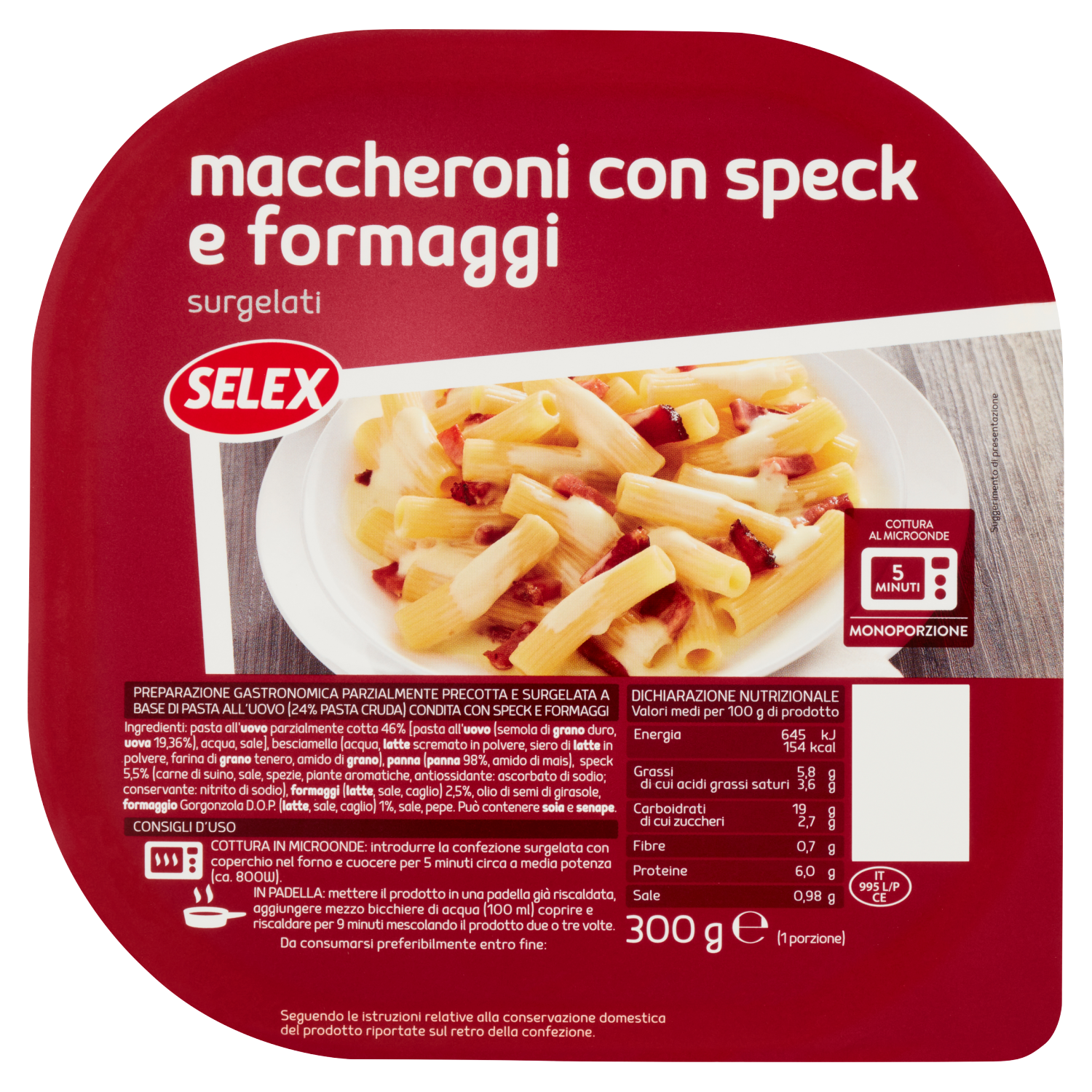 Selex Maccheroni con Speck e Formaggi Surgelati 300 g