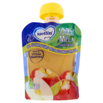 MELLIN Merenda di Frutta 100% con Vitamina C, Mela, a partire dal 6° mese, Pouch 90 g