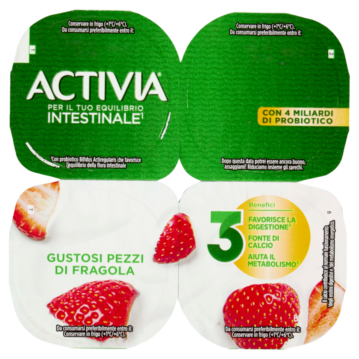 ACTIVIA Yogurt con Probiotico Bifidus, gusto Fragola, 4x125g
