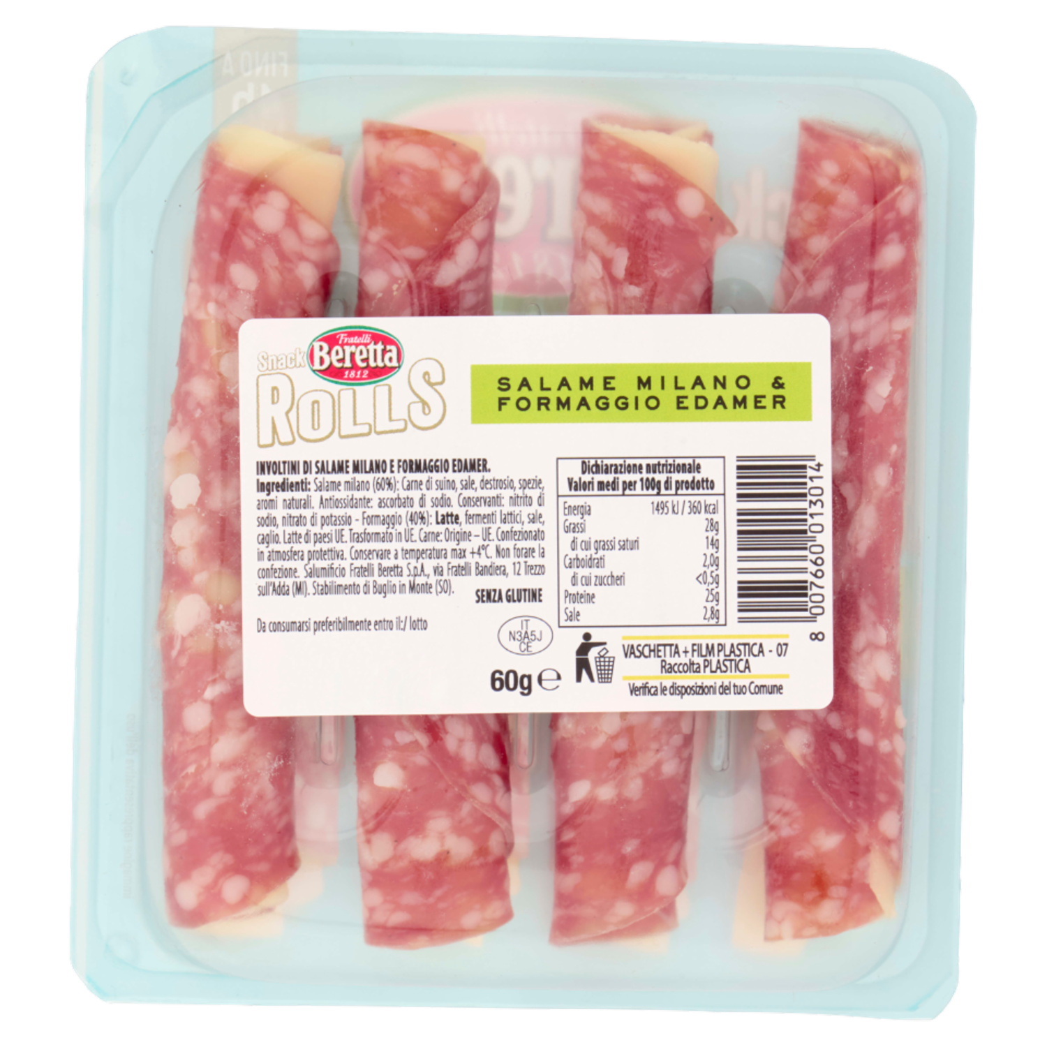 Fratelli Beretta Snack Rolls Salame Milano & Formaggio Edamer 60 g