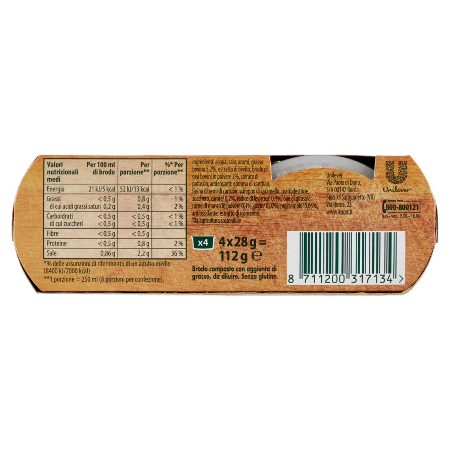 Knorr Cuore di Brodo Manzo -25% di Sale ** 4 x 28 g
