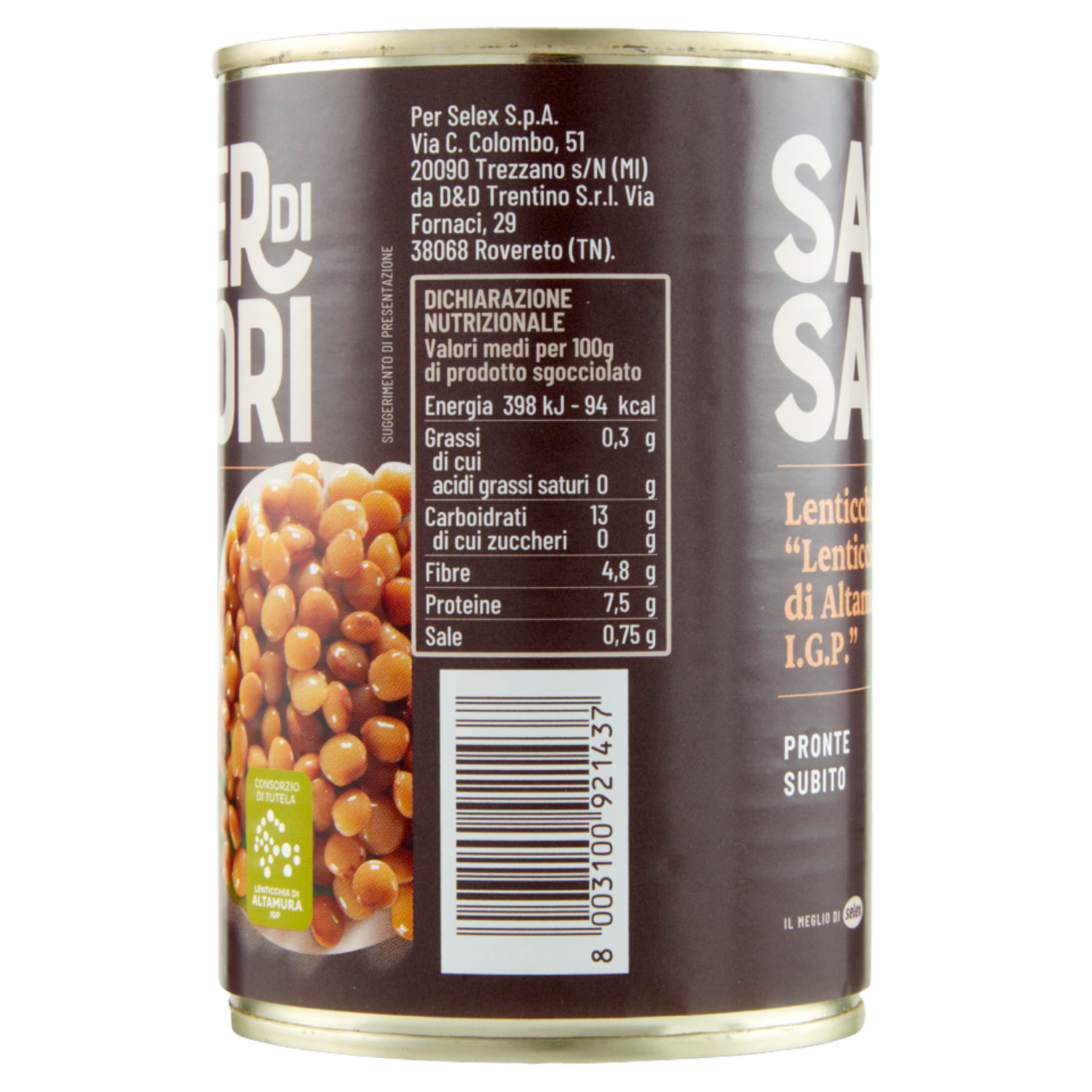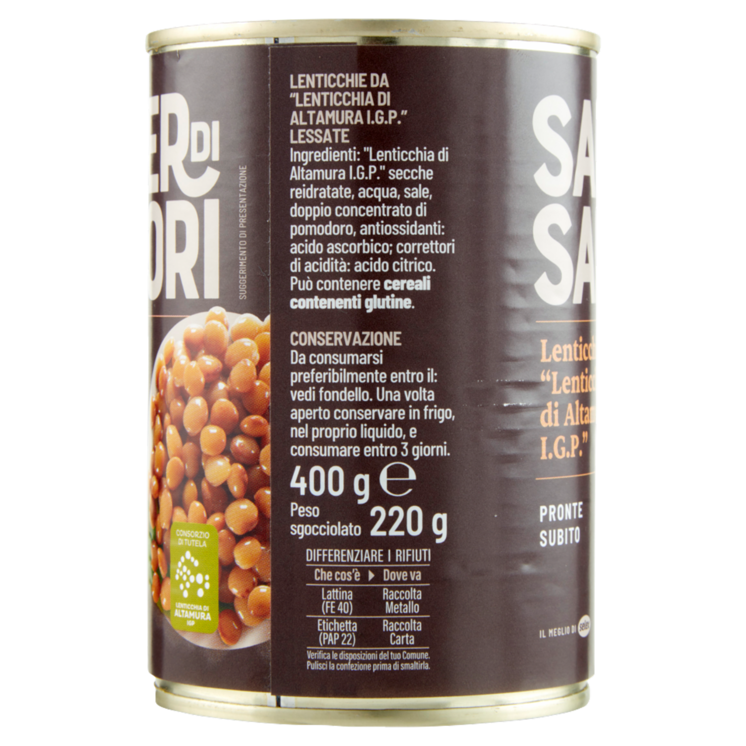 Selex Saper di Sapori Lenticchie Lessate da "Lenticchia di Altamura I.G.P." 400 g
