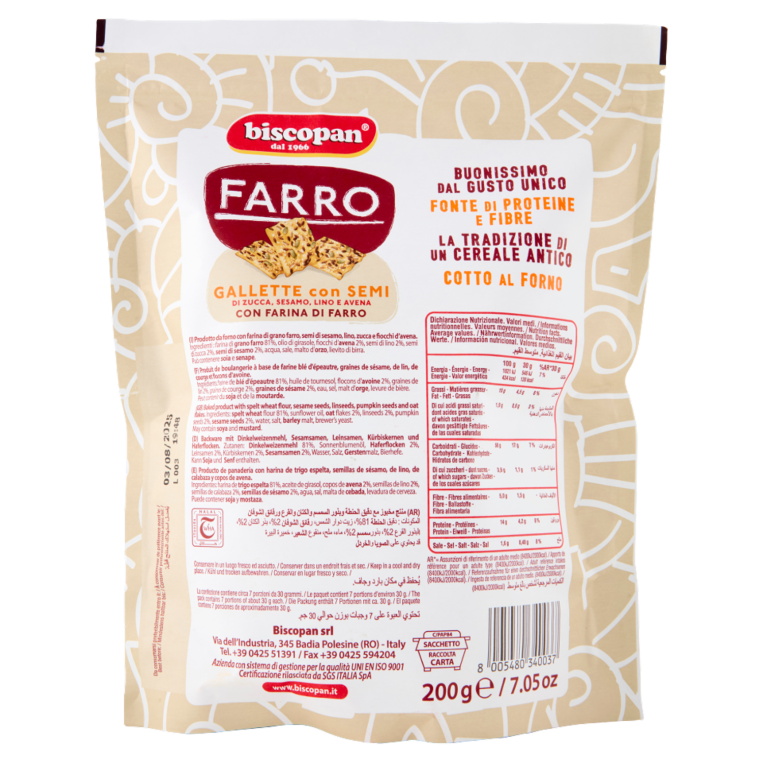 biscopan Farro Gallette con Semi di Zucca, Sesamo, Lino e Avena 200 g