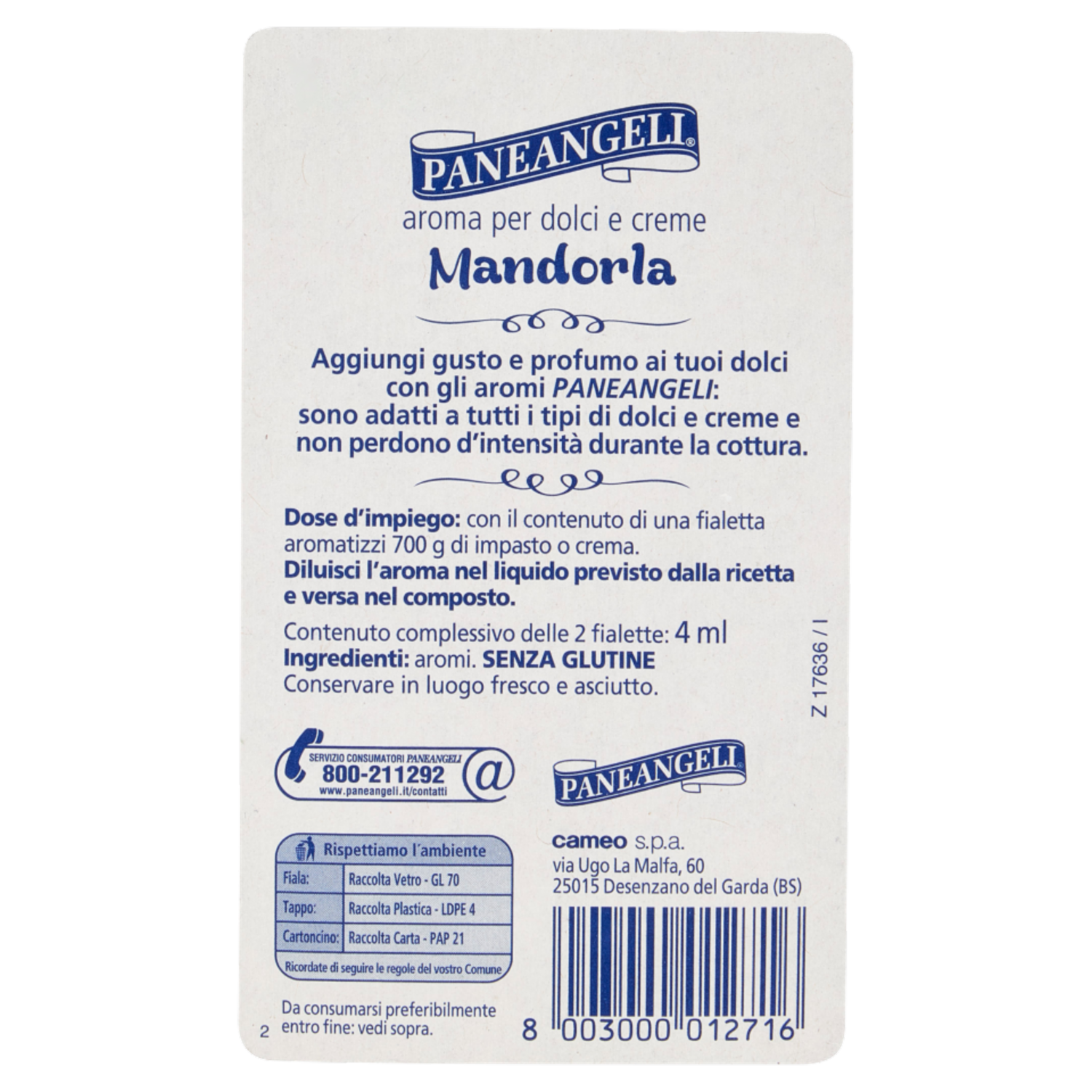 PANEANGELI aroma per dolci e creme Mandorla 2 fialette 4 ml