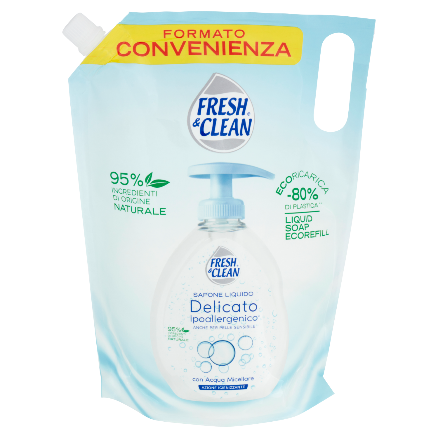 Fresh & Clean Sapone Liquido Delicato Ipoallergenico* con Acqua Micellare Ecoricarica 1000 ml