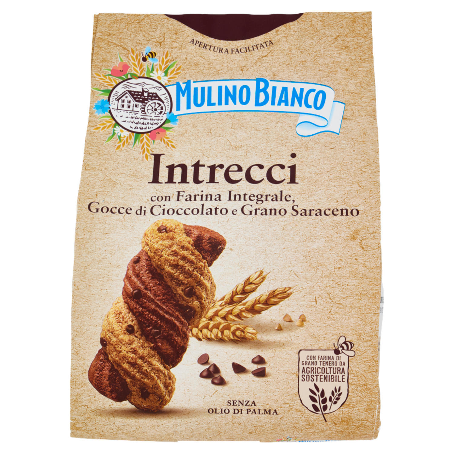 Mulino Bianco Intrecci Biscotti Integrali con Frolla al Cacao e Gocce Cioccolato 300g