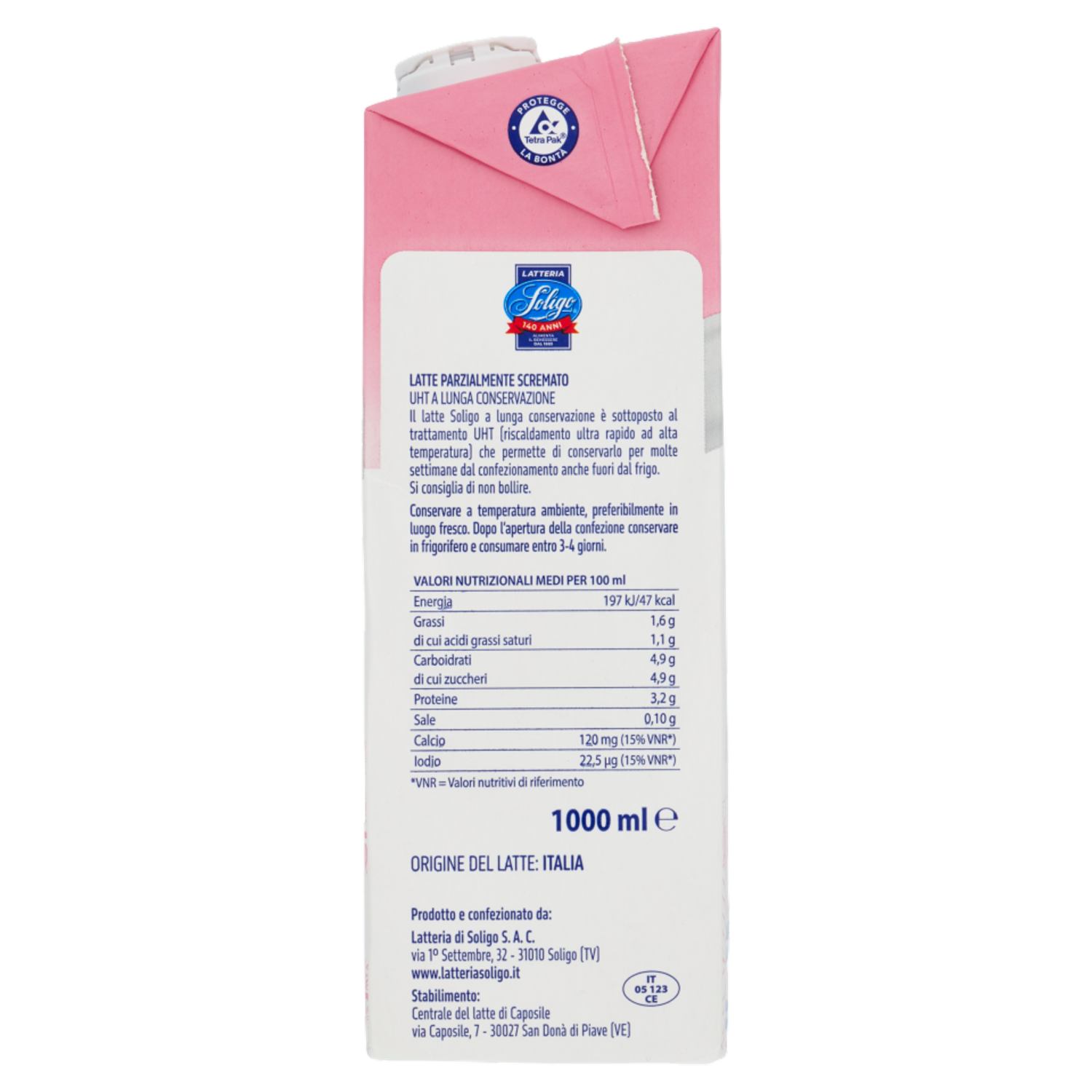 Latteria Soligo Latte Parzialmente Scremato UHT a Lunga Conservazione 1000 ml