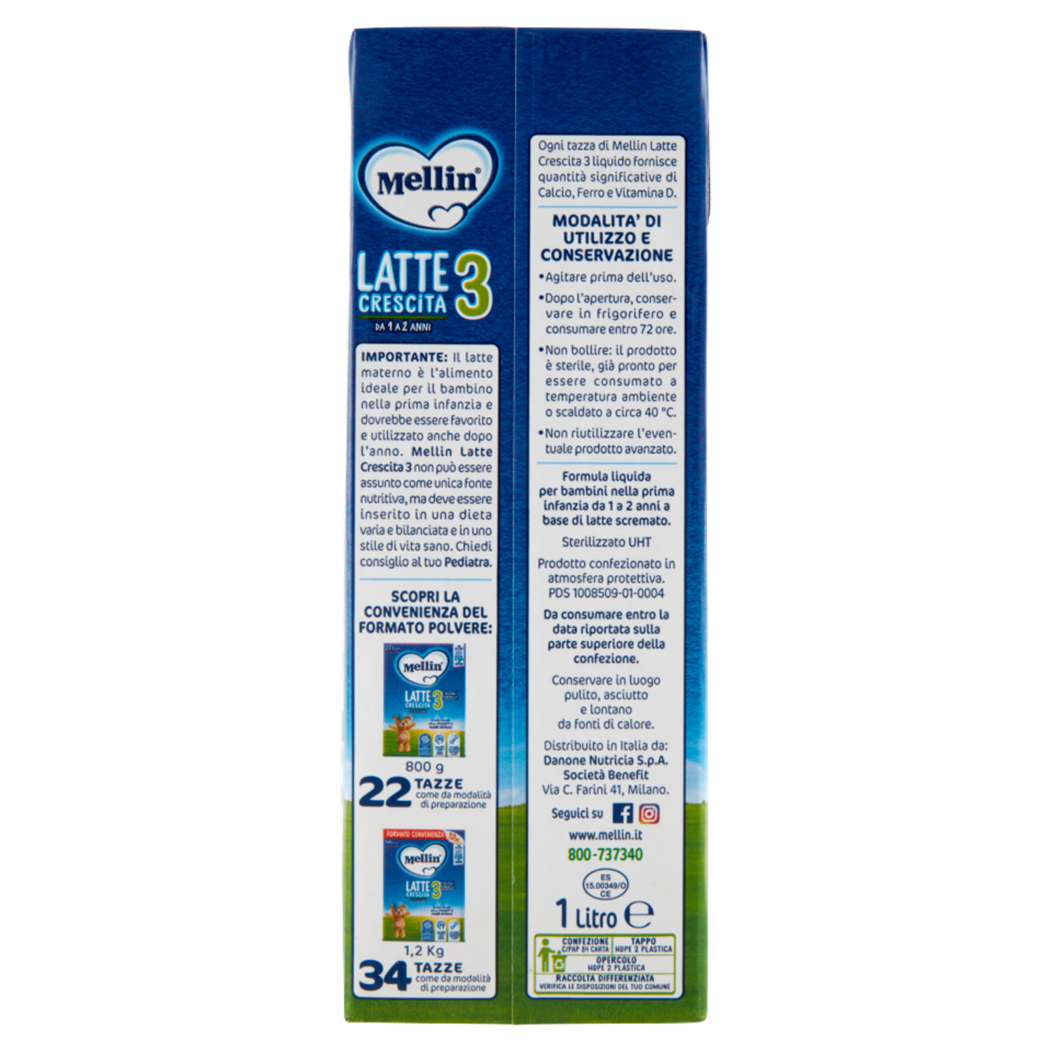MELLIN 3 - Latte di Crescita Liquido per Bambini da 1 a 2 anni 1L