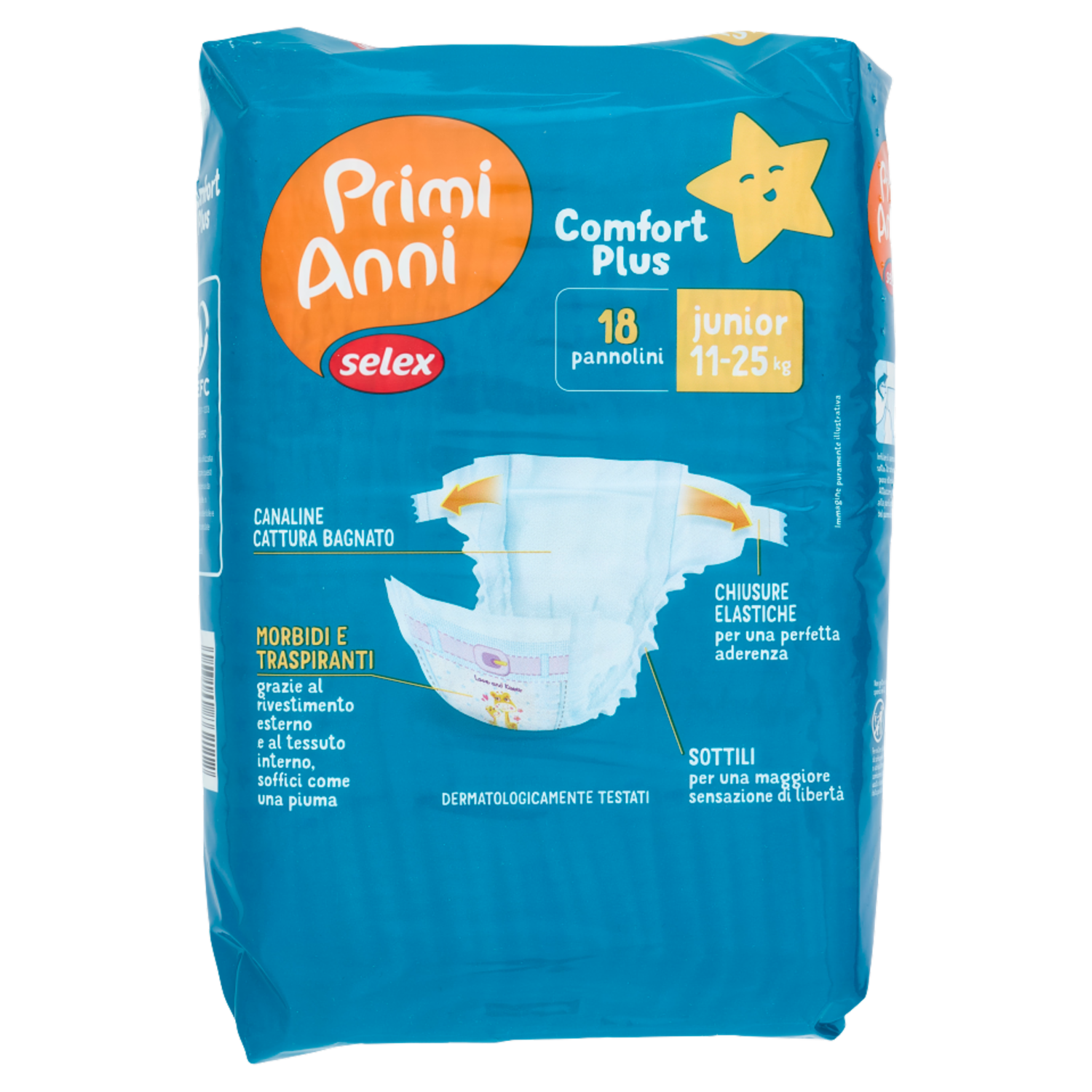 Selex Primi Anni Pannolini per Bambini Dry Comfort Junior 11-25 kg 18 pezzi