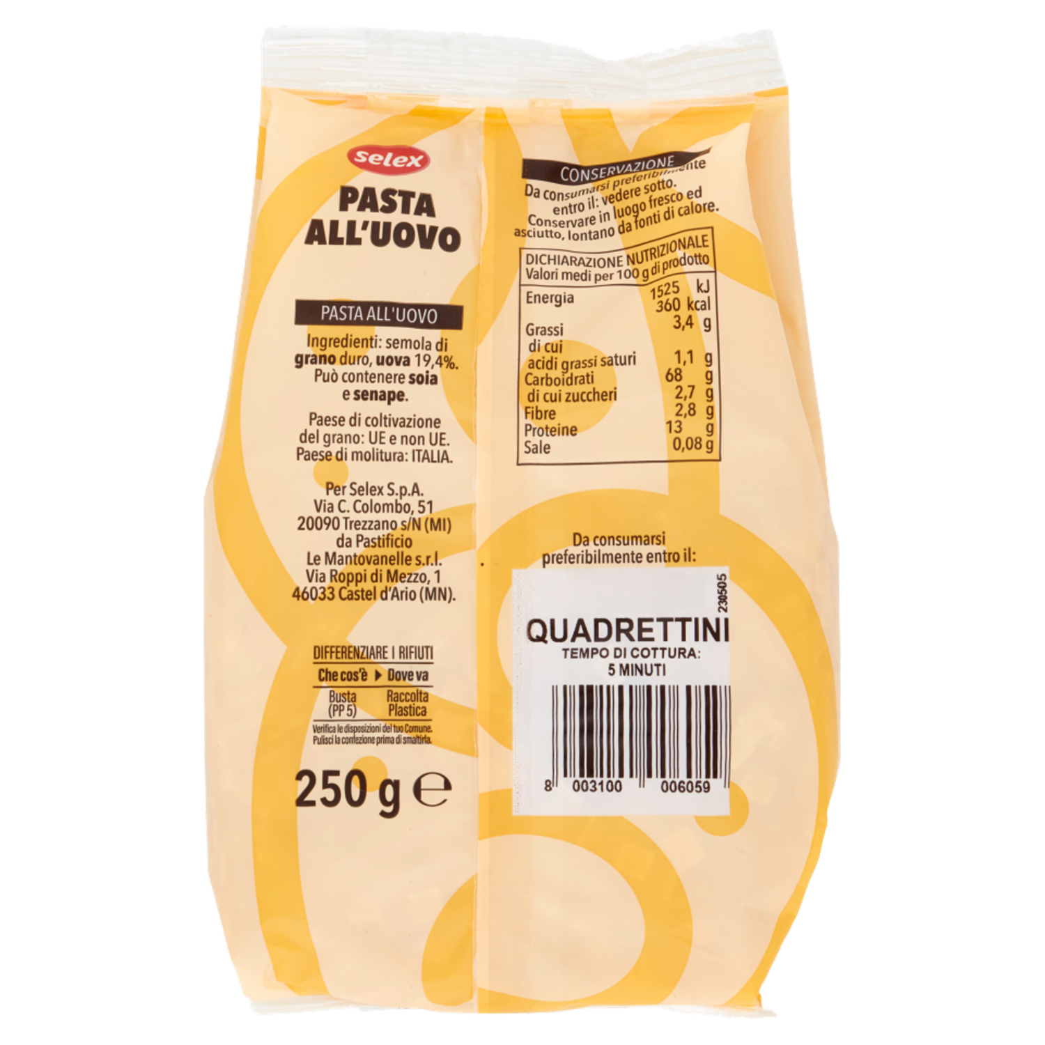 Selex Pasta all'Uovo Quadrettini 250 g