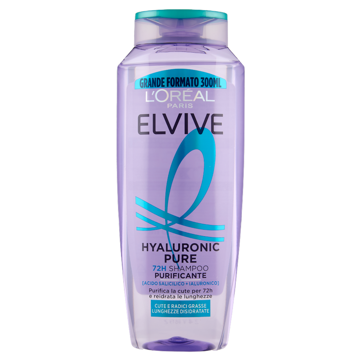 Elvive Hyaluronic Pure 72H Shampoo Purificante, per Cute e Radici Grasse, 300 ml