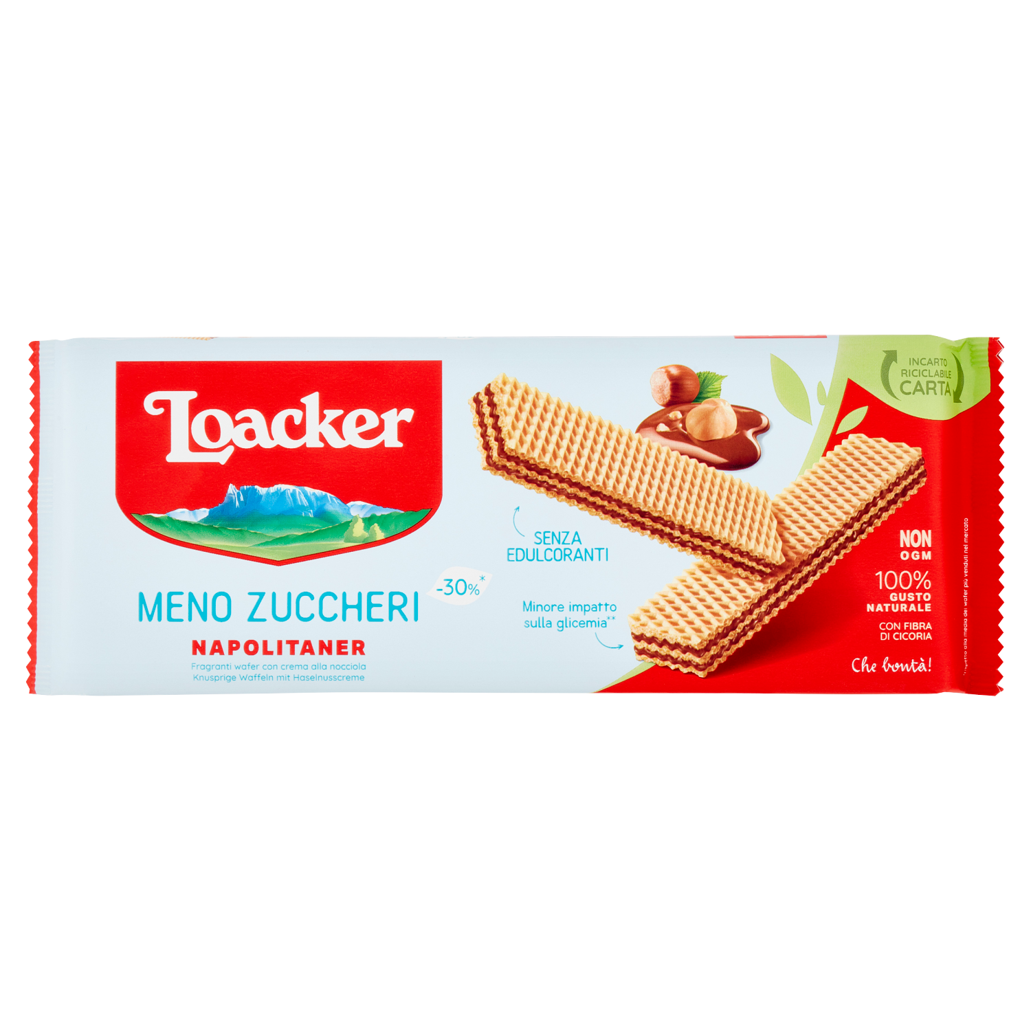 Loacker Wafer Meno Zuccheri Napolitaner con crema alle nocciole 100% italiane wafers 175g