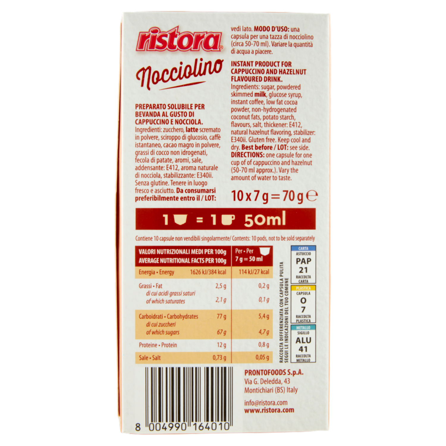 ristora Nocciolino 10 Capsule compatibili con macchine Nespresso* 70 g