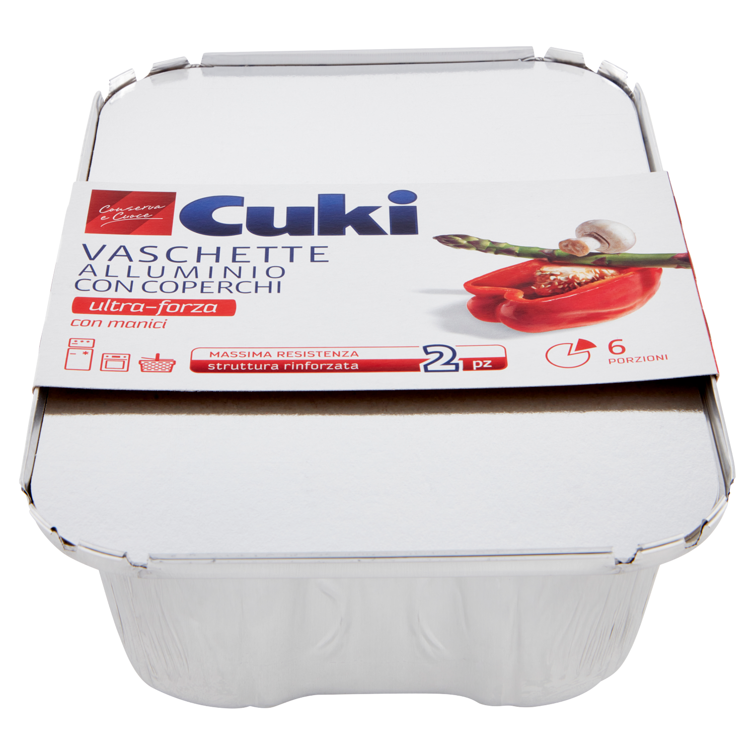 Cuki Conserva e Cuoce Vaschette Alluminio con Coperchi 6 Porzioni (RS99) - 2 pz