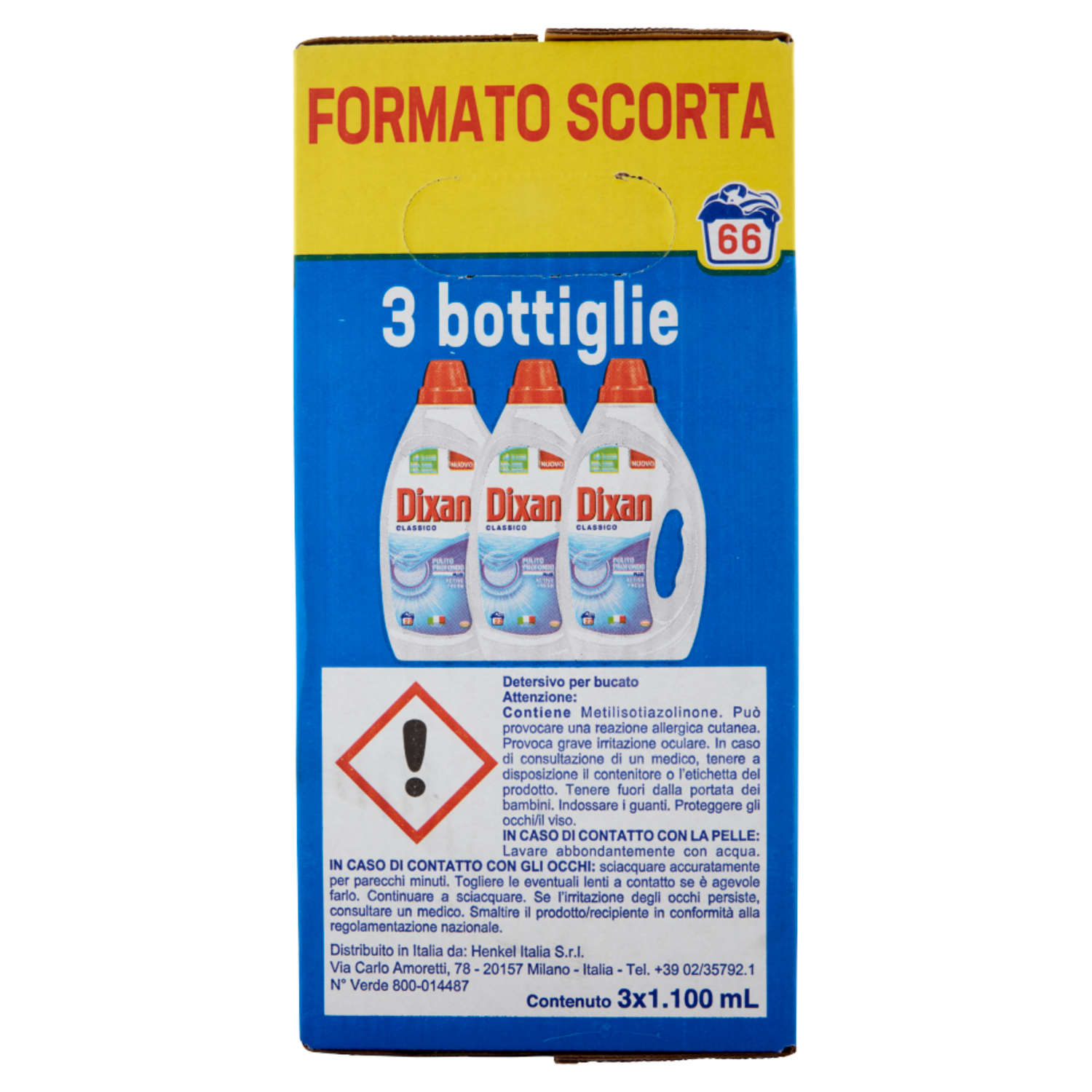 DIXAN Liquido Classico 3x22=66 Lavaggi 3 x 1.100 ml