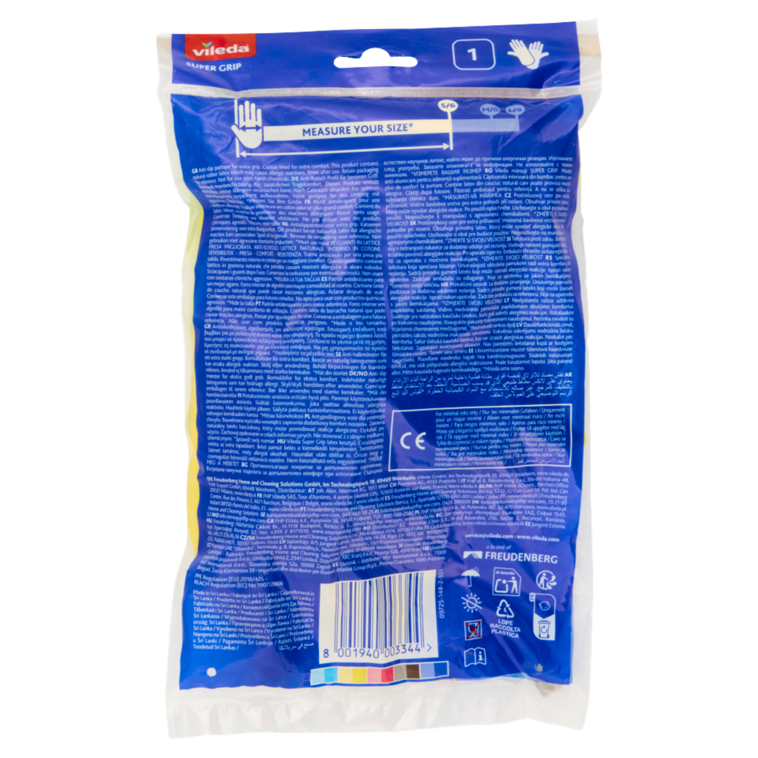 Vileda Super Grip, Guanti Casalinghi Taglia S