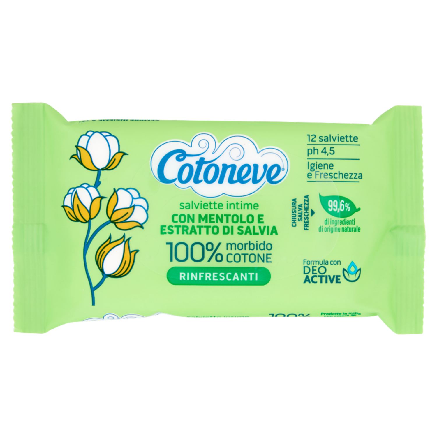 Cotoneve salviette intime con Mentolo e Estratto di Salvia Rinfrescanti 12 pz