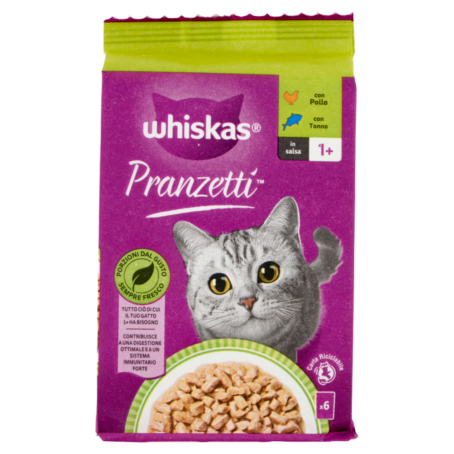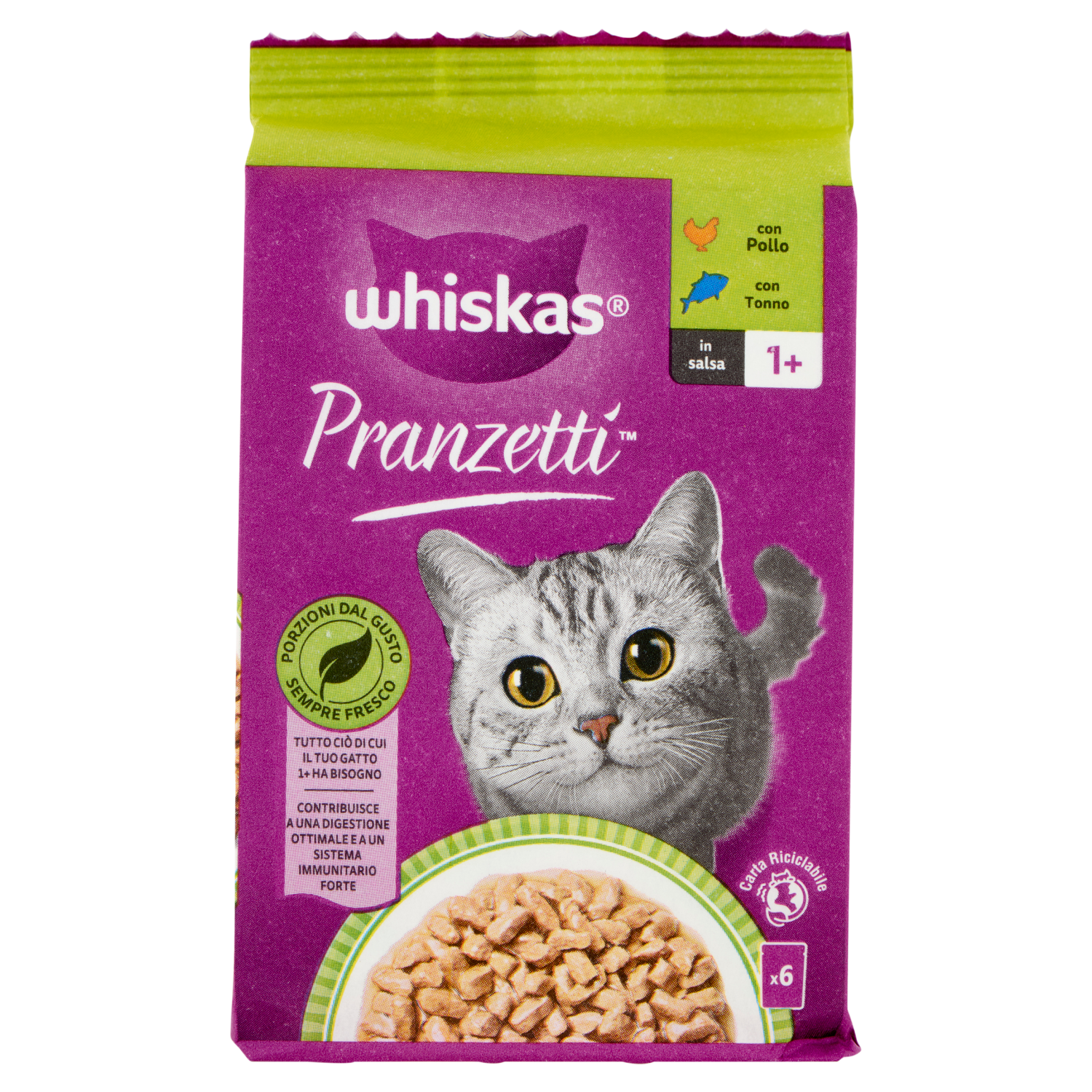 Whiskas Pranzetti Cibo Umido Gatto con Pollo e Tonno in Salsa 6x50g