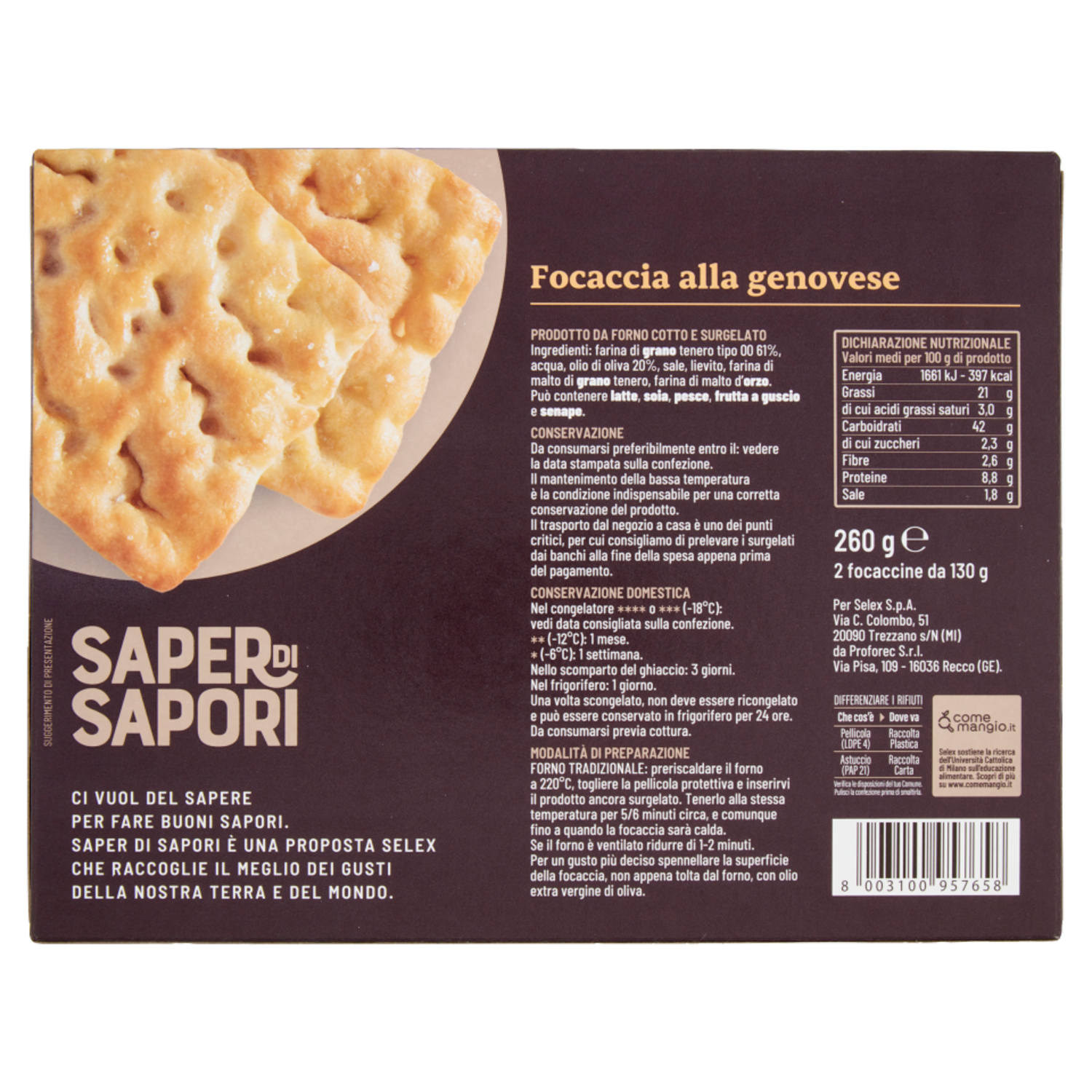 Selex Saper di Sapori Focaccia alla Genovese Surgelata 2x130 g