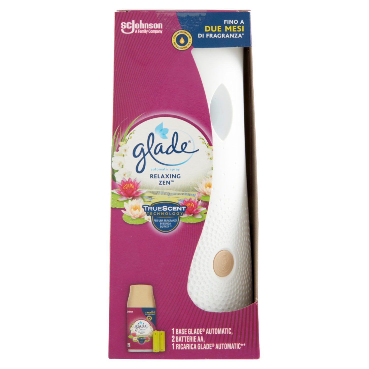 Glade Automatic Spray Base con Ricarica, Profumatore per ambienti, Fragranza Relaxing Zen 269ml
