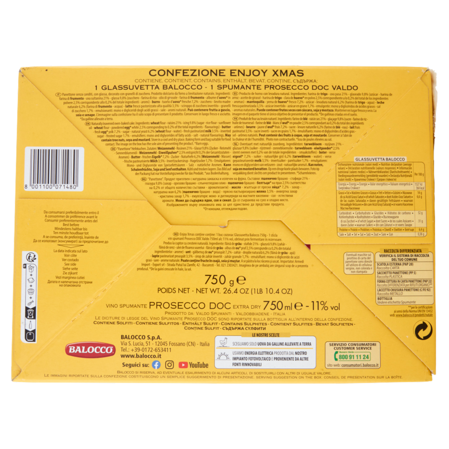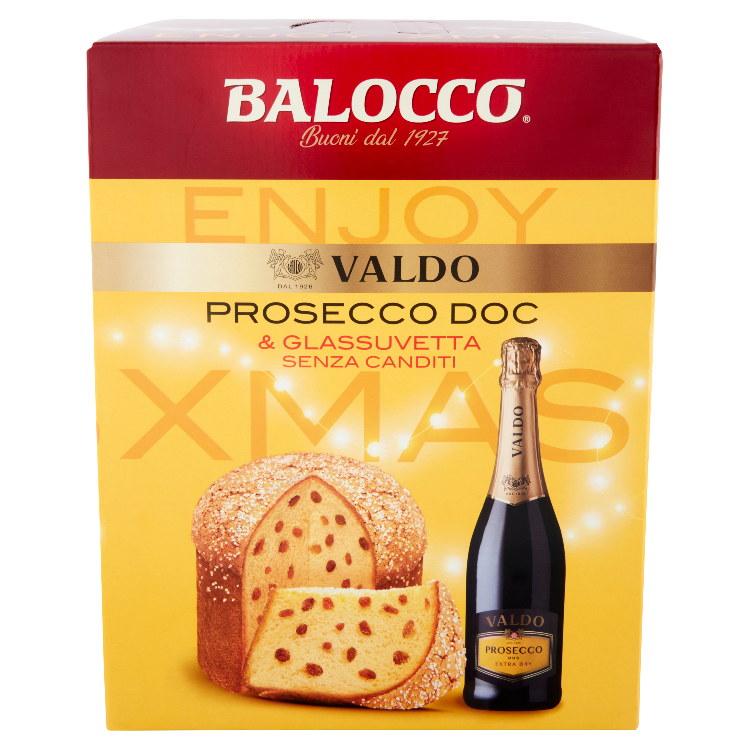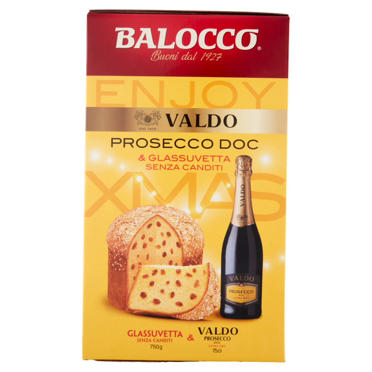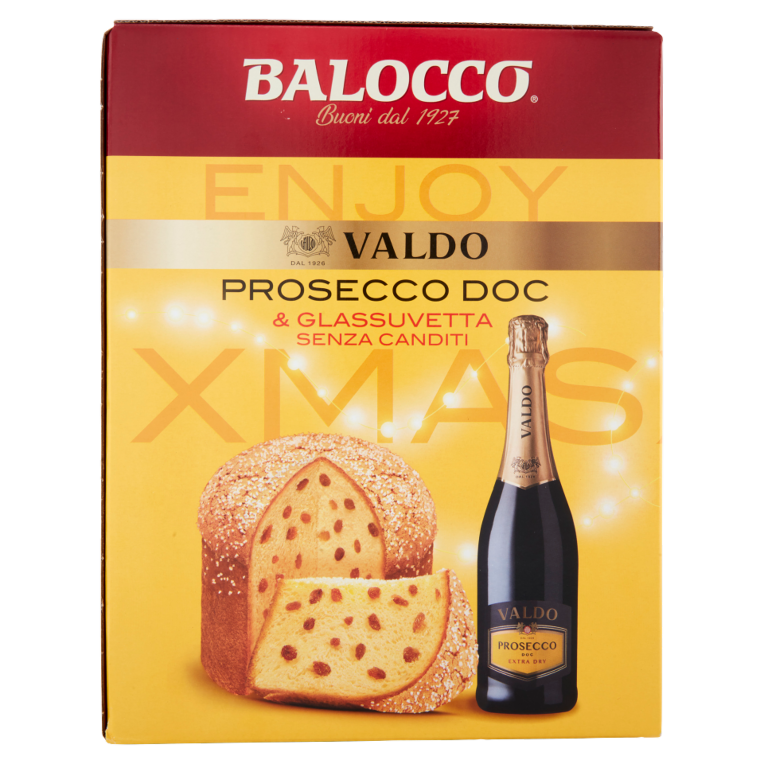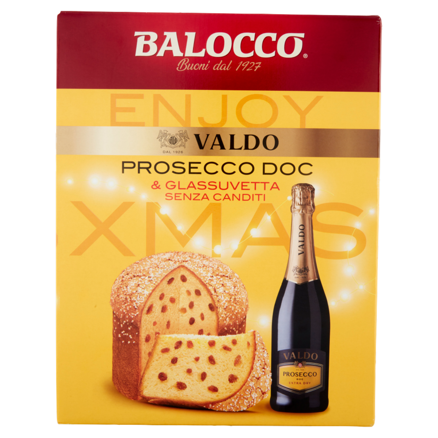 Balocco Enjoy Xmas Glassuvetta Senza Canditi 750 g & Valdo Prosecco DOC Extra Dry 75 cl