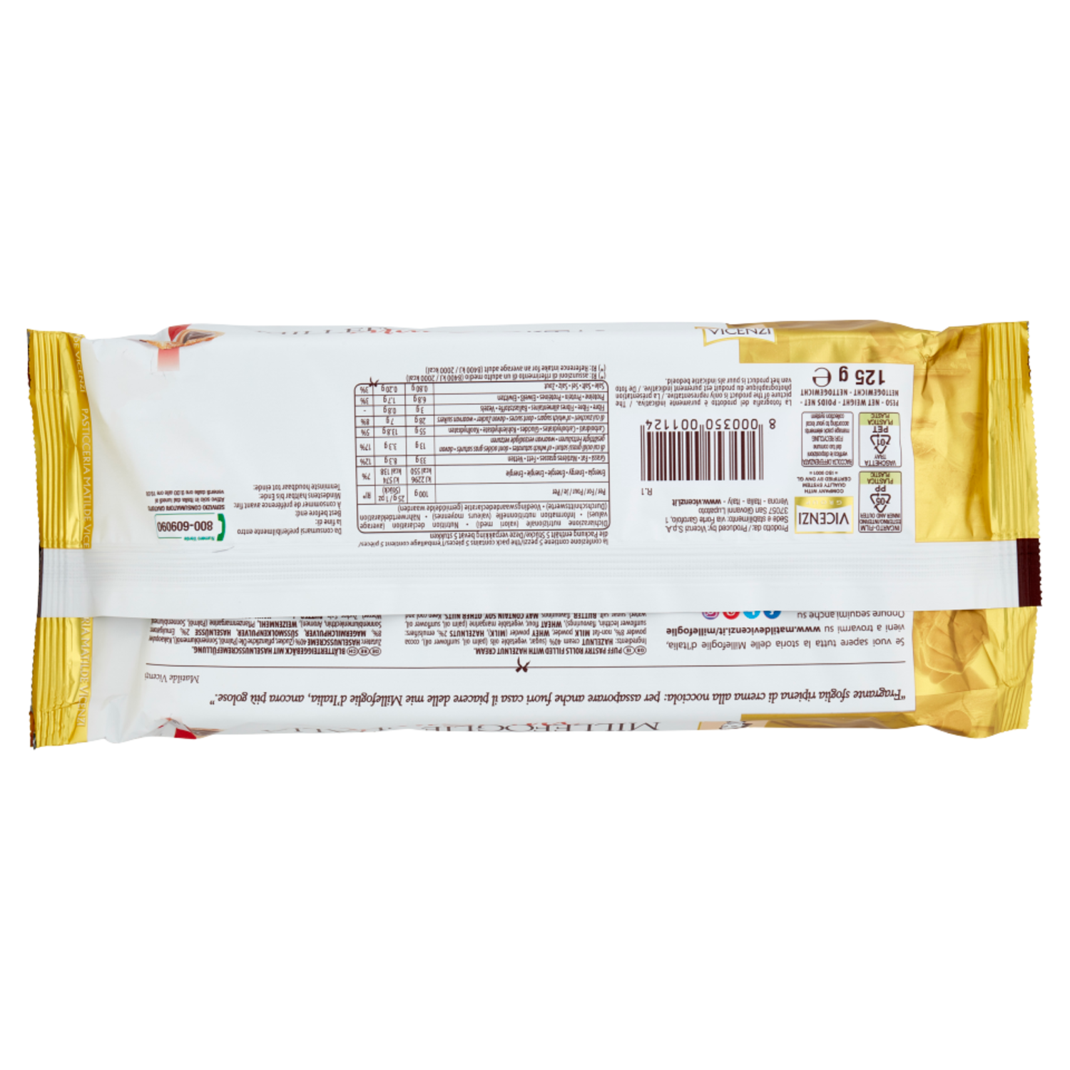 Pasticceria Matilde Vicenzi Millefoglie d'Italia MiniSnack nocciola 5 x 25 g