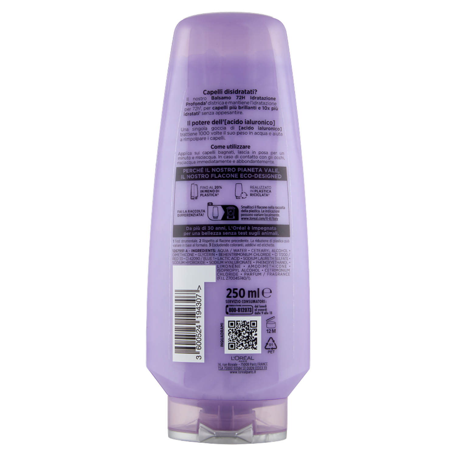 Elvive Hydra Hyaluronic Balsamo 72H Idratazione Profonda, per Capelli Disidratati, 250 ml