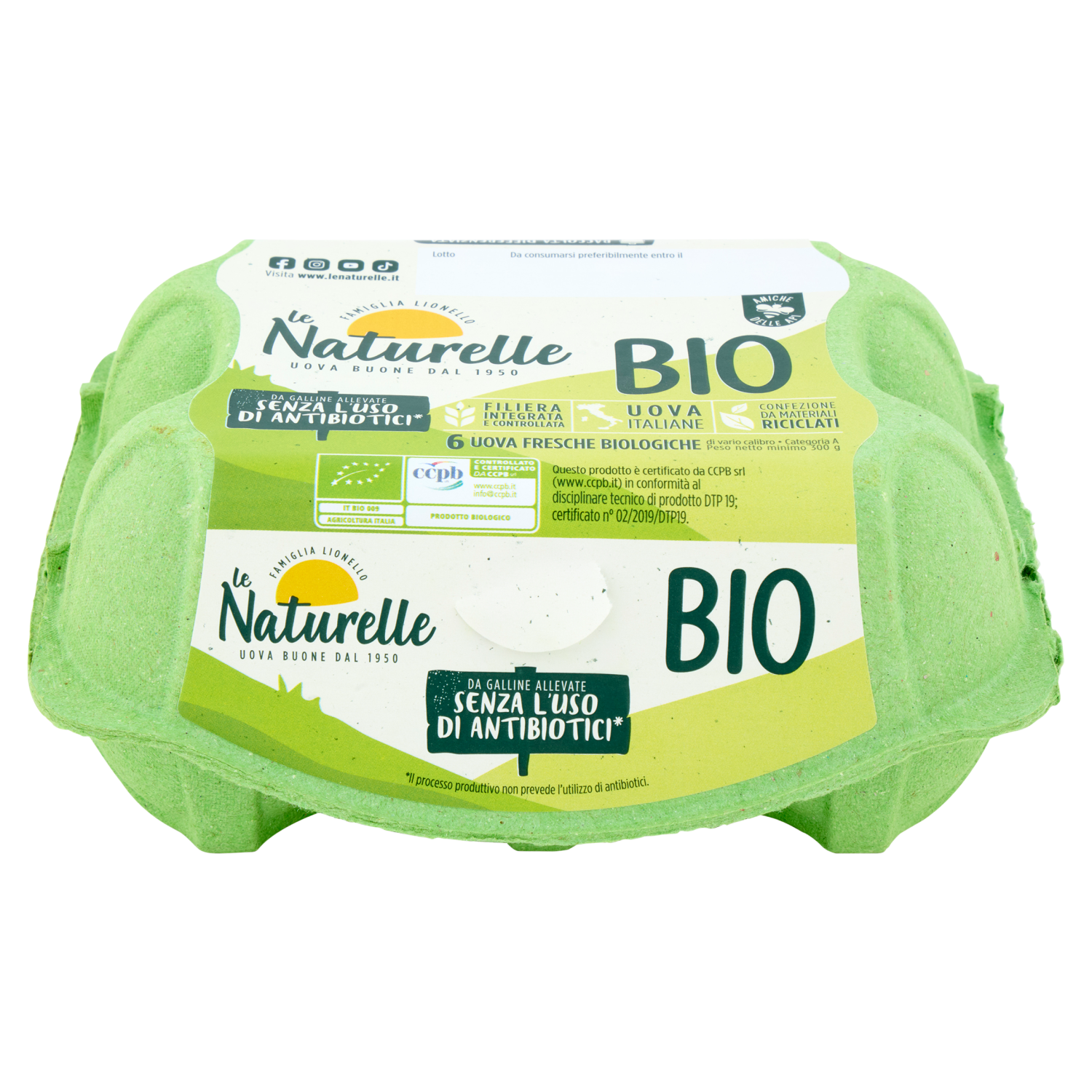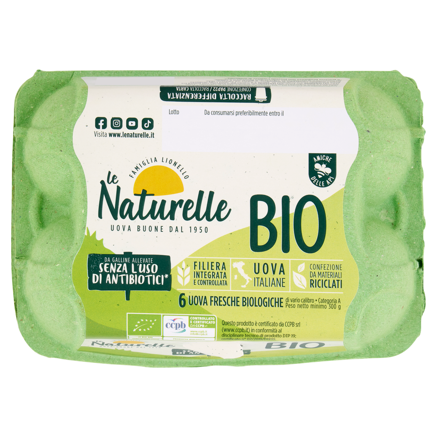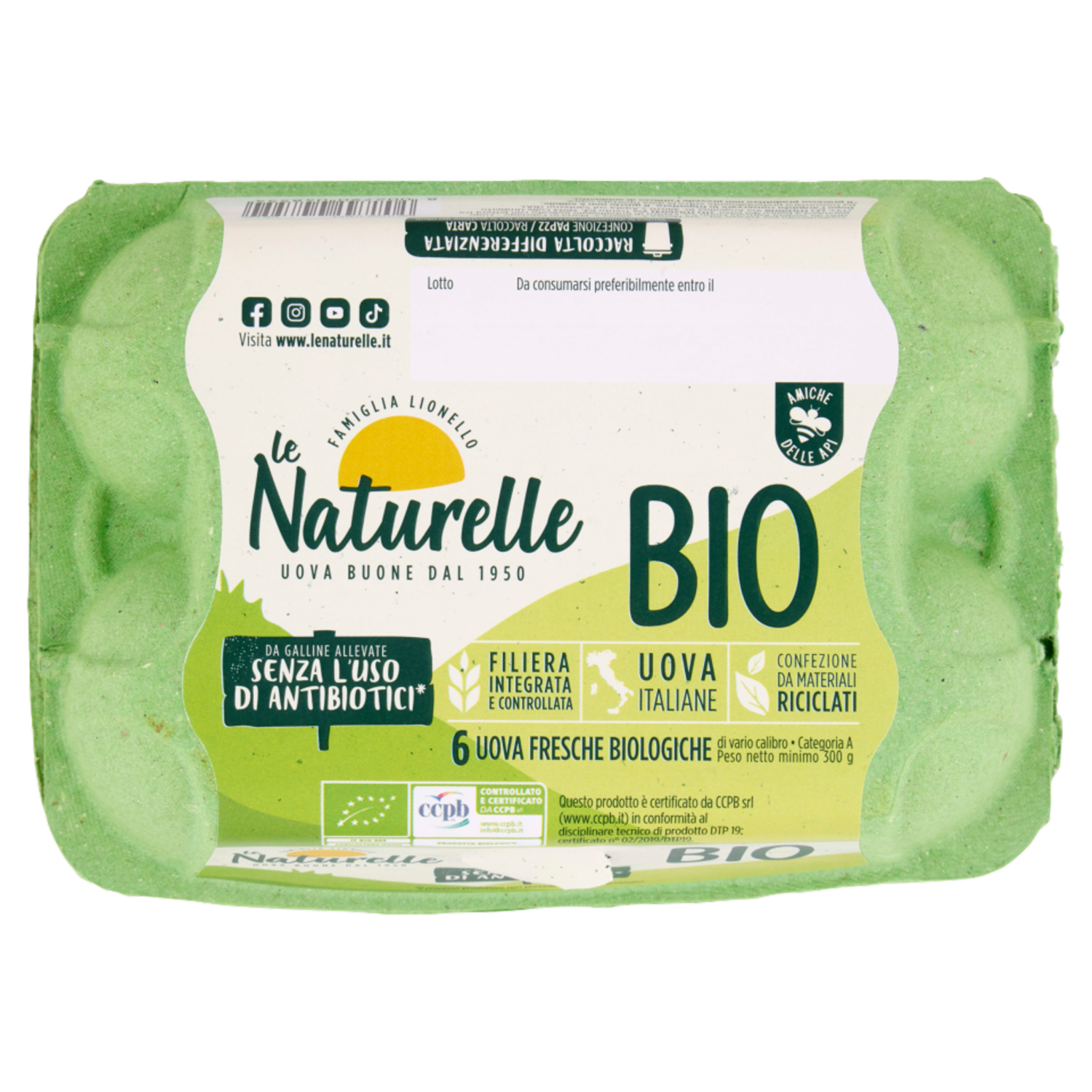 le Naturelle Bio 6 Uova Fresche Biologiche da Galline Allevate Senza l'Uso di Antibiotici* 300 g