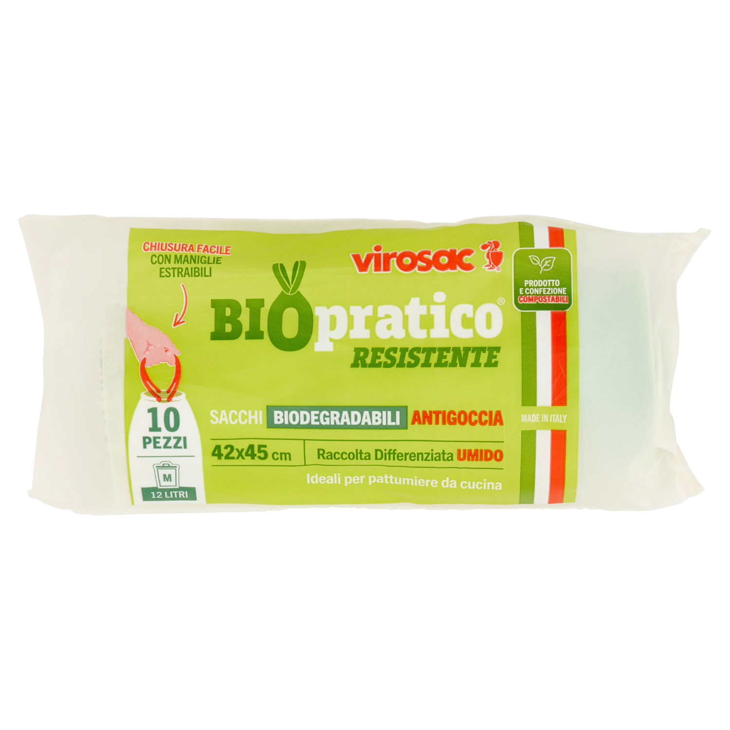 virosac Biopratico Resistente Sacchi Biodegradabili Antigoccia 42x45 cm 12 Litri M 10 pz