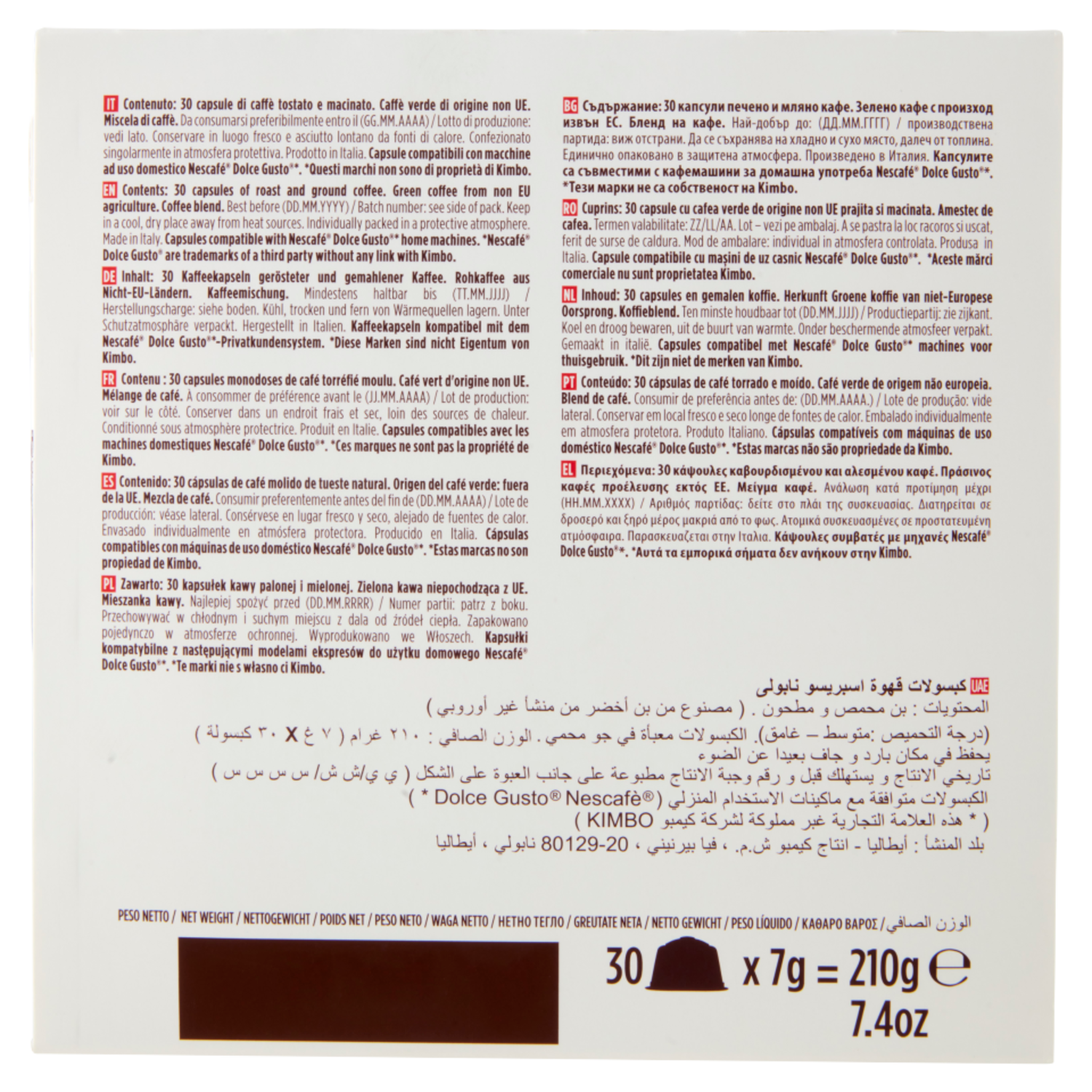 Kimbo Espresso Napoli Capsule Compatibili con le Macchine Nescafé Dolce Gusto* 30 x 7 g