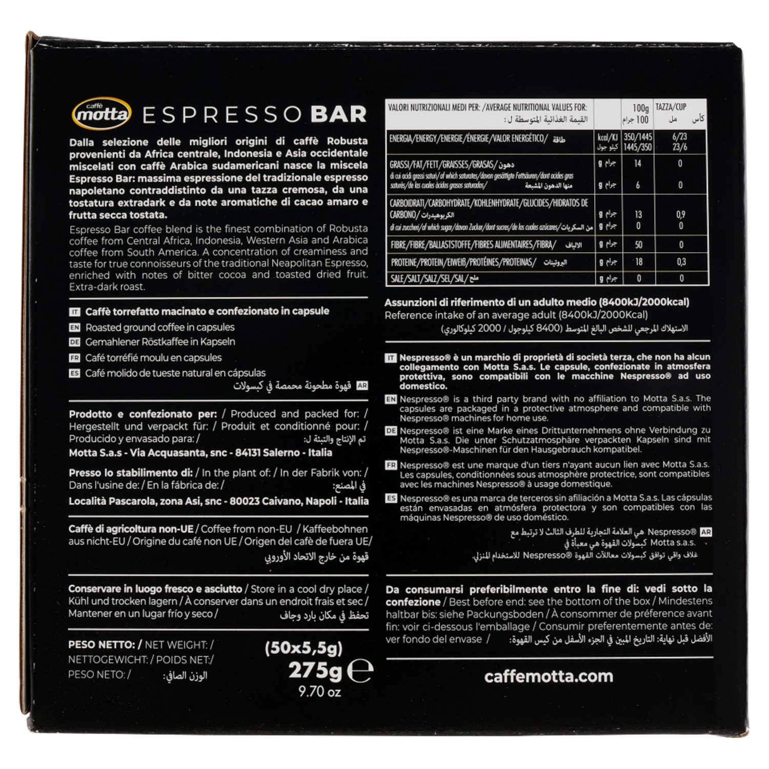 caffè motta Espresso Bar Capsule Compatibili con Macchine Nespresso 50 x 5,5 g