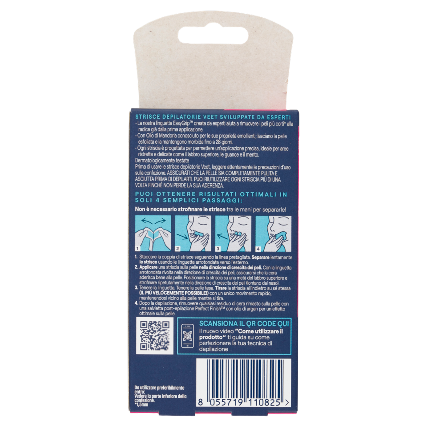 Veet Expert Strisce Viso Pelli Sensibili, 12 strisce