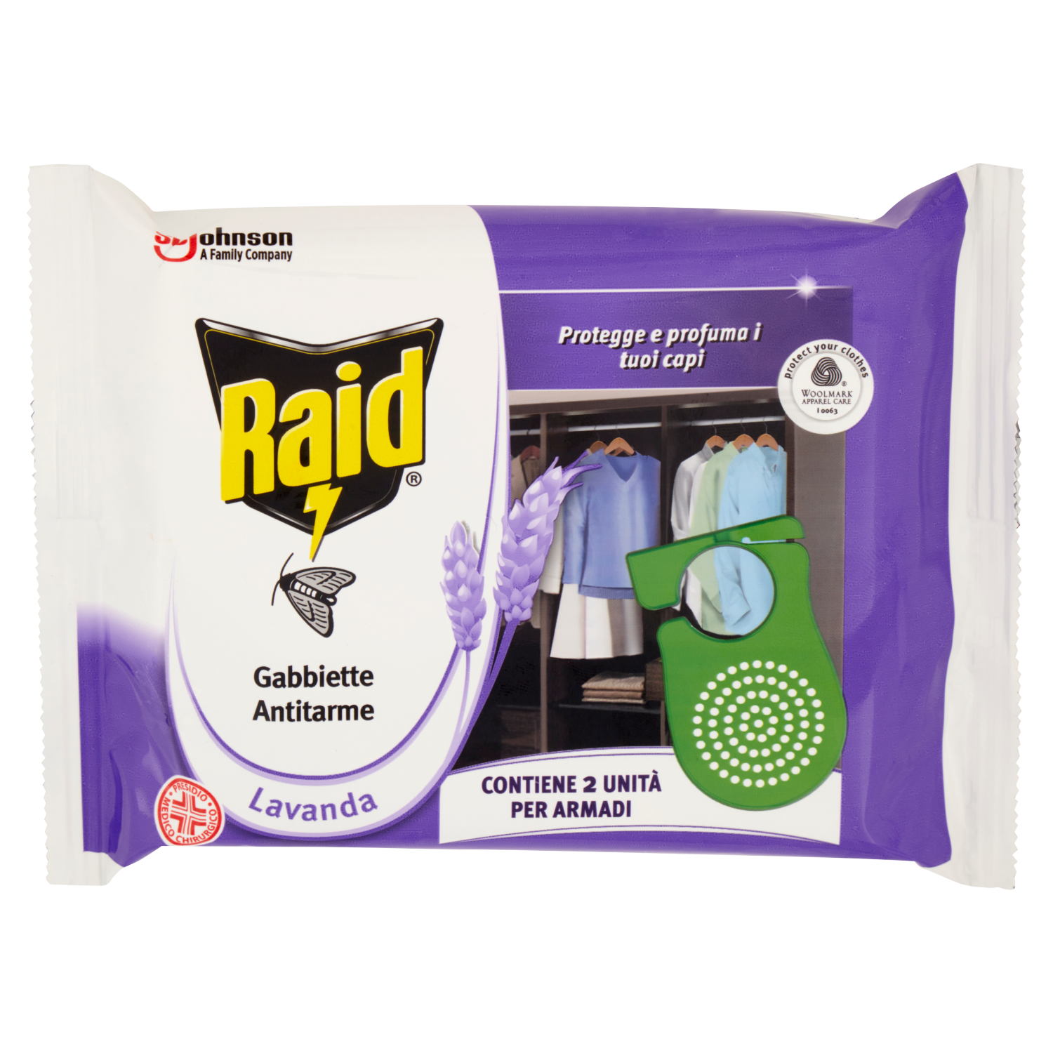 - Uccide le tarme adulte per 2 settimane - Uccide le larve delle tarme per 2 settimane - Profuma il guardaroba - Profuma gl indumenti - Rilascio graduale del profumo all'interno del guardaroba / non macchia e non danneggia i capi - Sostituire il prodotto ogni 2 settimane per un efficace effetto del profumo - Protezione degli indumenti* (*contro i cattivi odori) - Antitarme* (* contro larve ed esemplari adulti di tarma per 2 settimane). - Fino a 2 settimane di protezione antitarme contro tarme adulte e larve Le gabbiette antitarme diffondono in modo continuo una sostanza attiva che protegge gli indumenti e i tessuti (capi di vestiario, pellicce) dalle tarme dei tessuti e dalle larve fino a 2 settimane. La tavoletta con formulazione solida è contenuto in una gabbietta areata che: 1. Fornisce una diffusione costante, attiva e controllata 2. Può essere posizionata a diretto contatto con i capi di abbigliamento sugli appendiabiti all'interno dell'armadio senza lasciare residui né danneggiare i tessuti. Profuma il tuo armadio per 2 settimane, lasciando una piacevole fragranza floreale. Proteggi il tuo guardaroba e profuma i tuoi vestiti