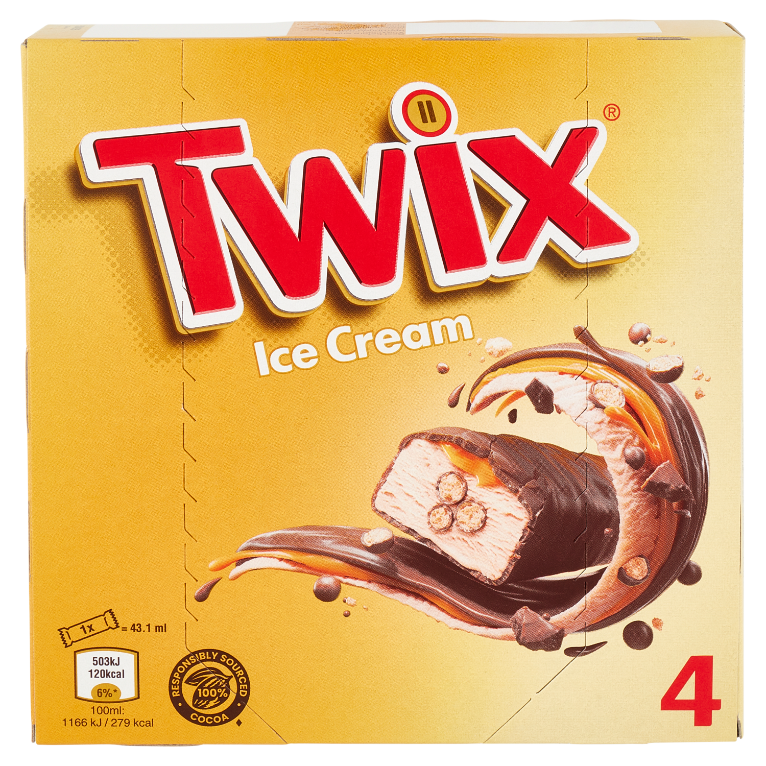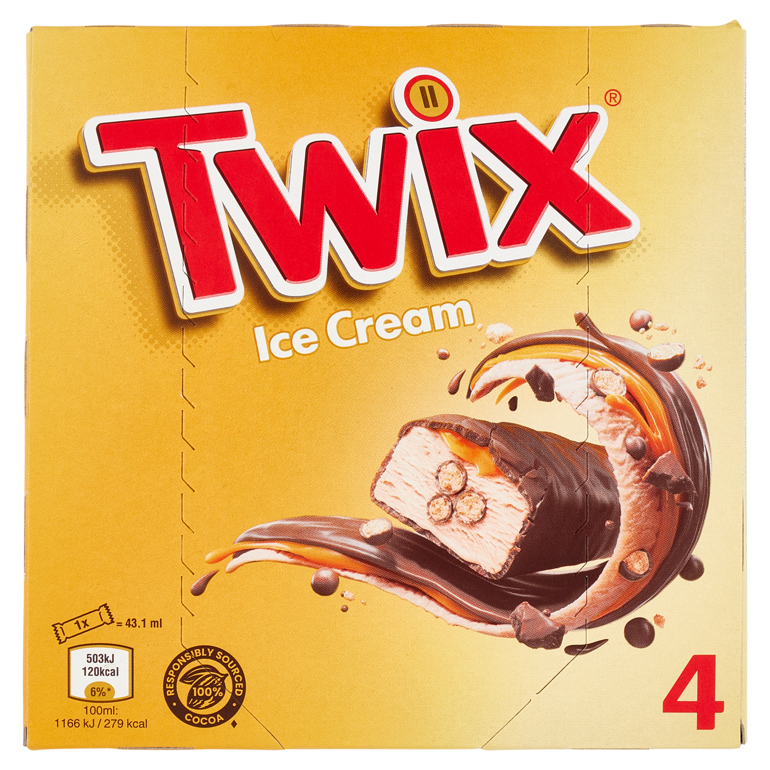 Twix Barretta Gelato con biscotto ricoperto di cioccolato al latte, Multipack da 4 x 34.2 g