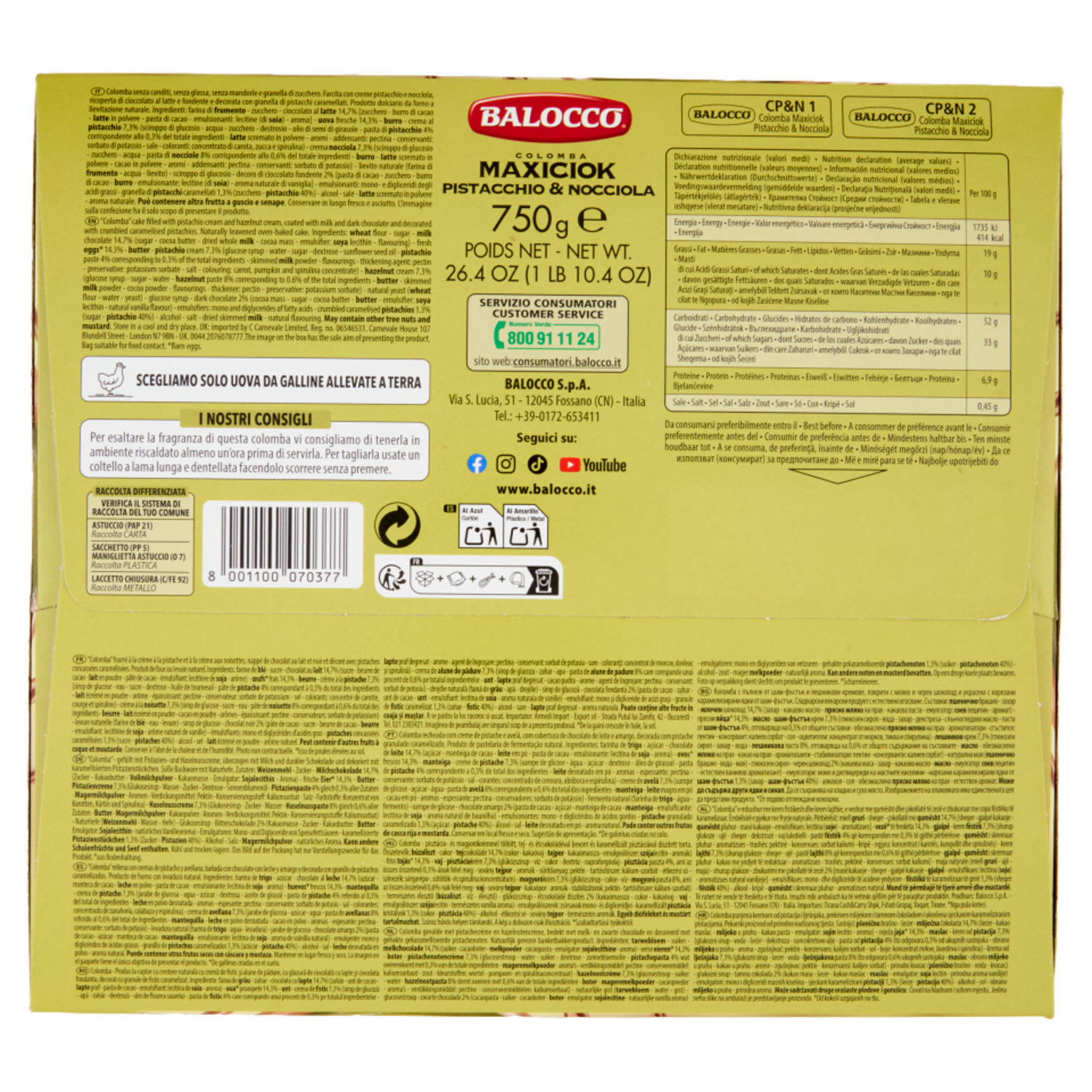 Balocco Colomba Maxiciok Pistacchio & Nocciola 750 g