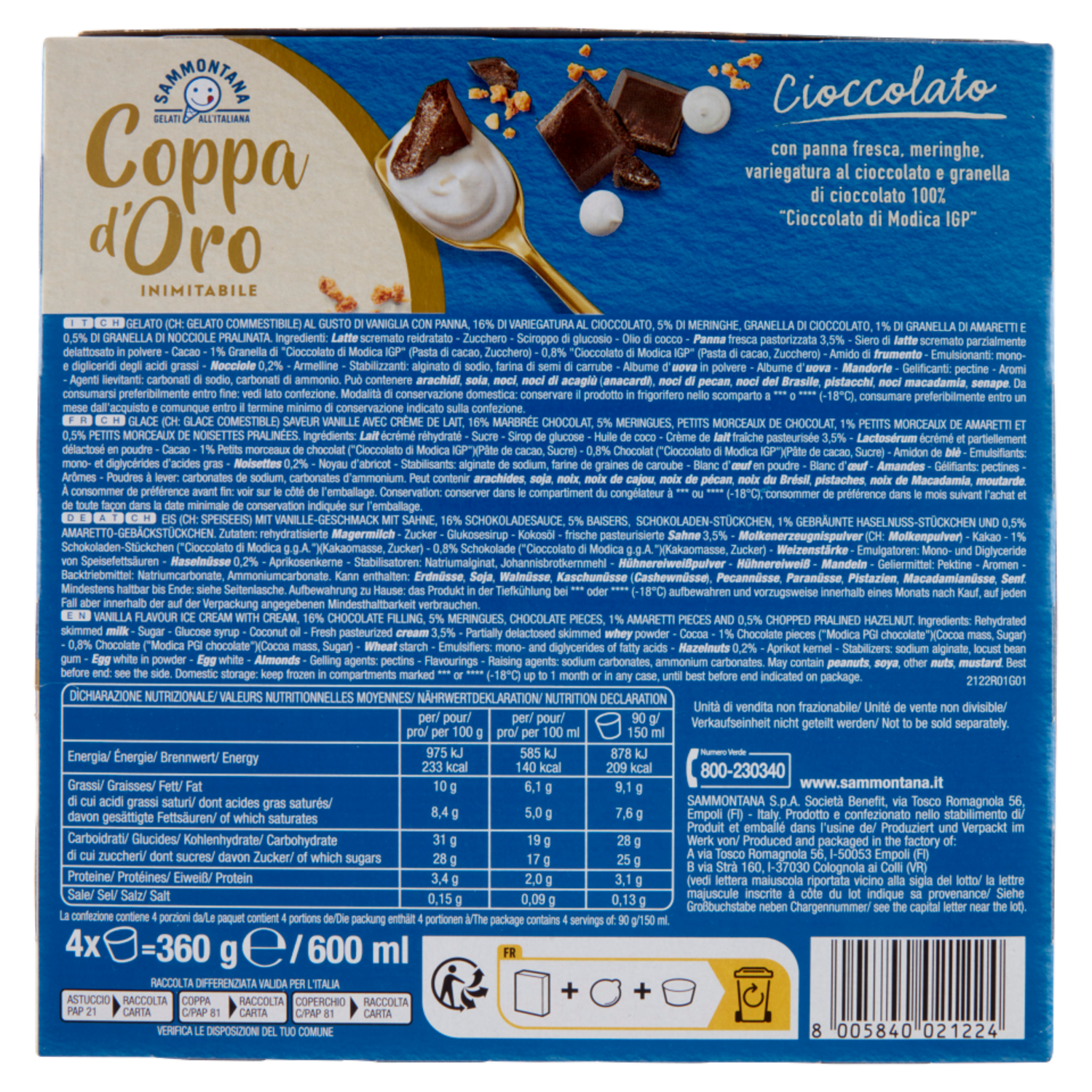 Sammontana Coppa d'Oro Cioccolato 4 x 90 g