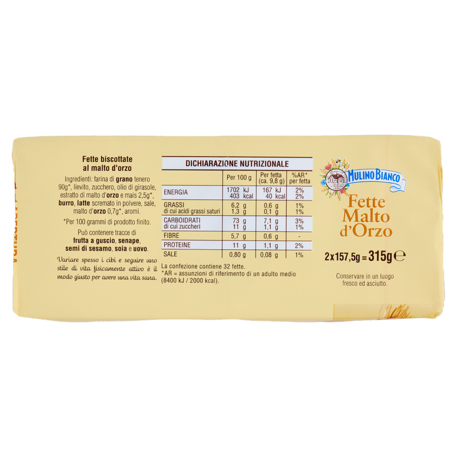 Mulino Bianco Fette Biscottate Malto d'Orzo 315g