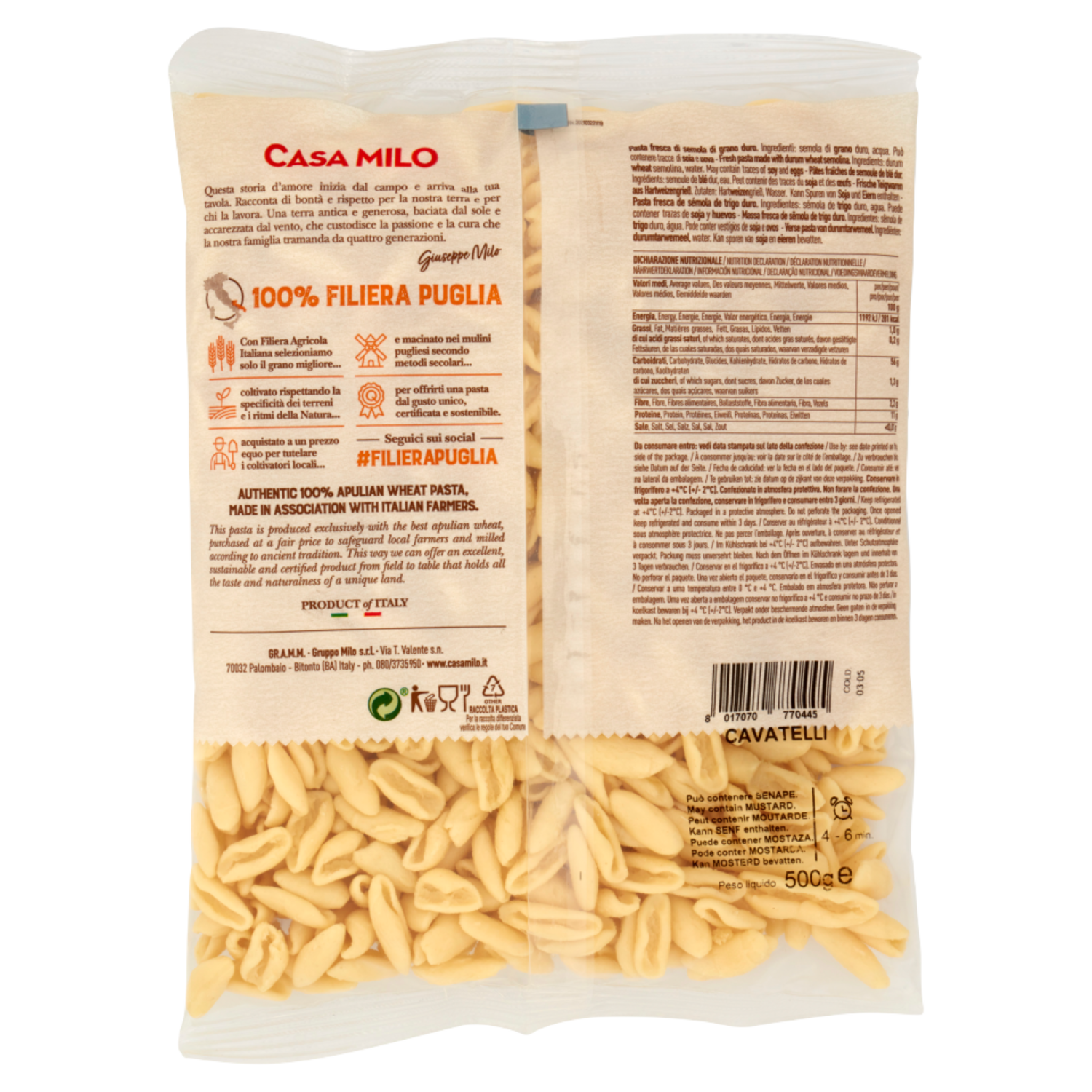 Casa Milo 100% Filiera Puglia Cavatelli 500 g